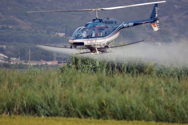 Para acabar, comentar que ver un tratamiento realizado con un helicóptero o con una avioneta es espectacular. Es bello. Acrobático. Y también grande. Porque grandes son las cantidades de insecticida que aplican. Yo creo que lo que aplicó en un día el helicóptero en el tratamiento de los arrozales no lo gasto yo en varios años.