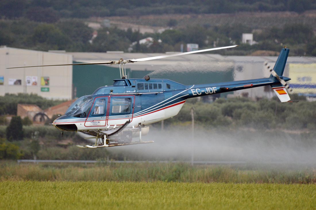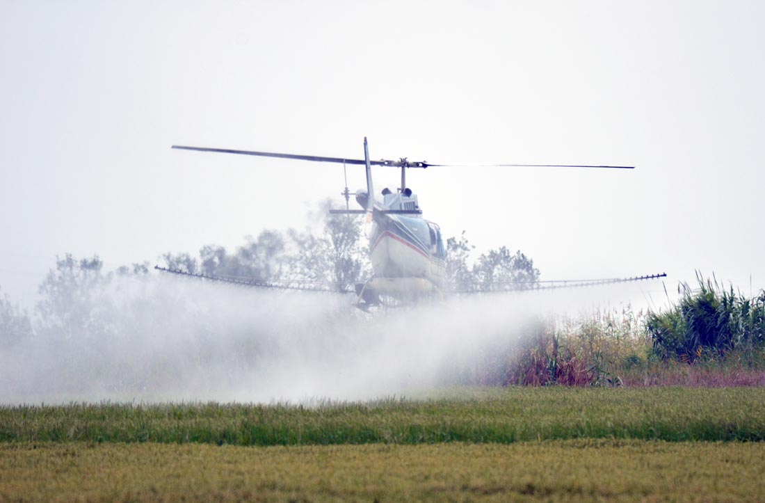 Para acabar, comentar que ver un tratamiento realizado con un helicóptero o con una avioneta es espectacular. Es bello. Acrobático. Y también grande. Porque grandes son las cantidades de insecticida que aplican. Yo creo que lo que aplicó en un día el helicóptero en el tratamiento de los arrozales no lo gasto yo en varios años.