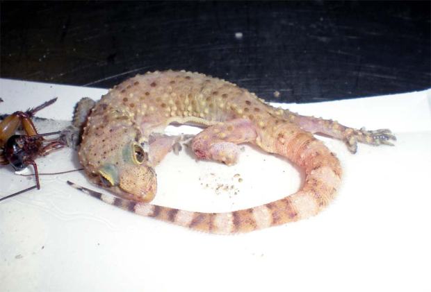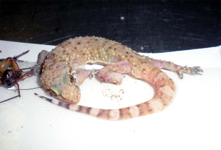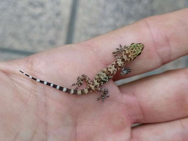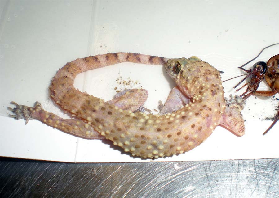 Fig 10. Salamanquesa rosada (Hemidactylus turcicus) liberada de una trampa para cucarachas./ C. Pradera 06-2013