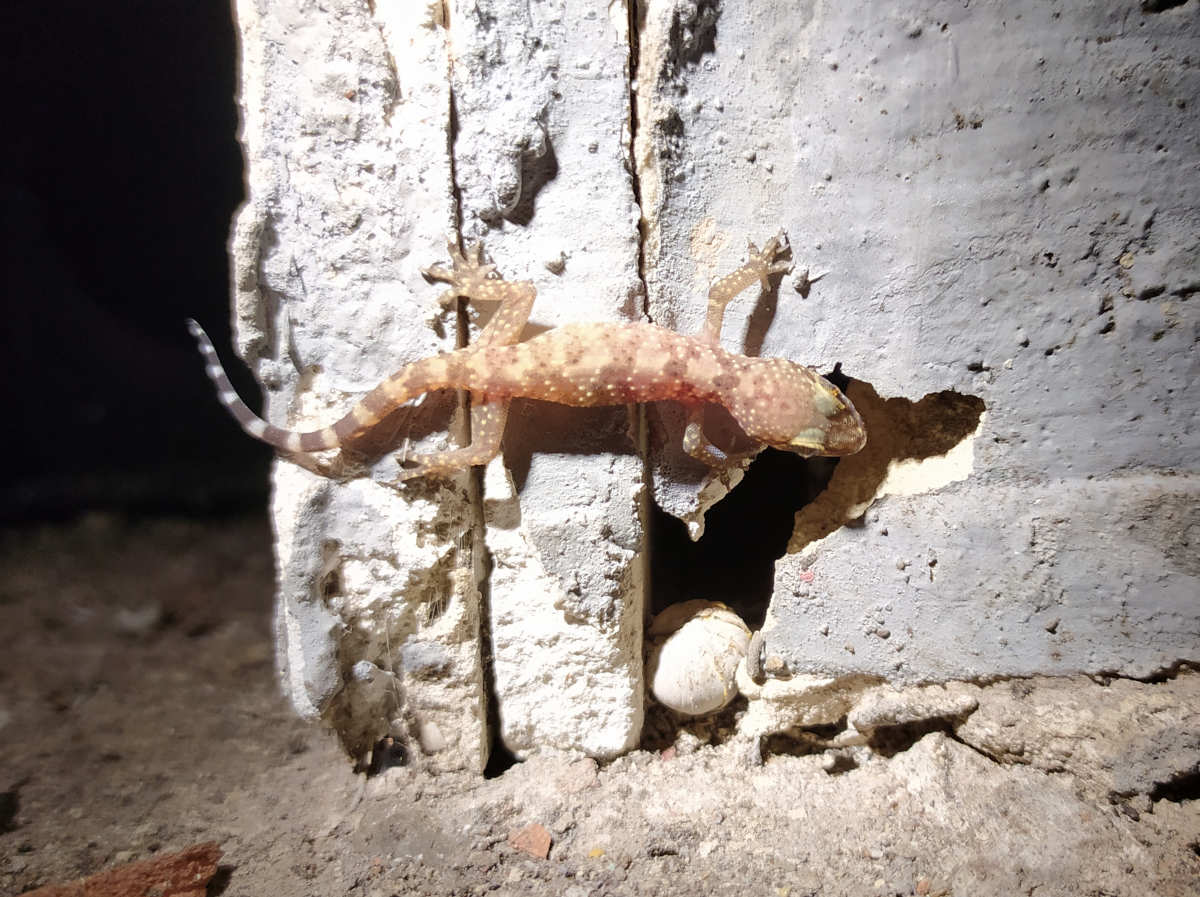 Fig 9. Salamanquesa rosada (Hemidactylus turcicus) liberada una trampa para cucarachas./ C. Pradera 06-2013