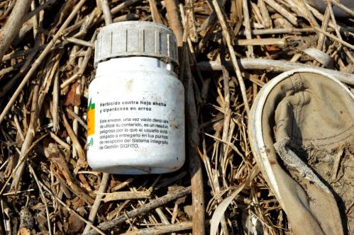 También le comenté que, cuando estuve de vacaciones recientemente, también encontré desechos junto a campos de arroz en el Delta del Ebro. Aproveché entonces para tomar unas fotografías que comparto de una situación que no se debería dar. Ahora bien, de todos los objetos que había, tan solo me fijé en los envases vacíos de productos fitosanitarios. En las imágenes 2 y 3, se puede leer claramente la etiqueta donde se explica cómo hay que proceder con un envase vacío.
