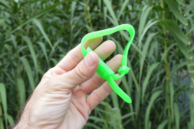 Para demostrar que no sirven, esta tarde he ido a mi laboratorio de mosquitos donde me he llevado una pulsera antimosquitos (figura 1). A unos 100 metros detrás de mi casa se encuentra una zona con gran abundancia de mosquitos tigre (Aedes albopictus). En esta zona pongo a prueba los productos que, supuestamente, repelen a los mosquitos. Creo que el mosquito tigre es el mejor para hacer pruebas. Además, según pone en el envase de la pulsera es de «eficacia probada frente al mosquito tigre». La pulsera tiene un aspecto estéticamente bonito.