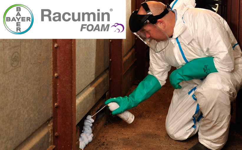 Racumin Foam actúa de la misma manera que Racumin Polvo. El roedor queda impregnado y, luego, al limpiarse lo ingiere. Ha sido formulado con cumatetralilo al 0’4%, que es el anticoagulante de primera generación que Bayer desarrollara en la década de 1950. Esto tiene una ventaja, ya que se trata de una materia activa menos usada que otras y, por tanto, con menos probabilidad de resistencia. Racumin Foam, por su formulación en espuma, es un producto más seguro que el polvo de contacto. Por una parte, es seguro para el técnico aplicador, ya que el producto no queda suspendido en el ambiente. Y por otra, se queda en la zona de aplicación, seguridad para las personas. Ahora bien, la ventaja que va a hacer que este producto ayude realmente en el control de roedores, es que se puede aplicar sobre cualquier agujero a modo de barrera, con lo cual el roedor que pase va a entrar en contacto con toda seguridad.