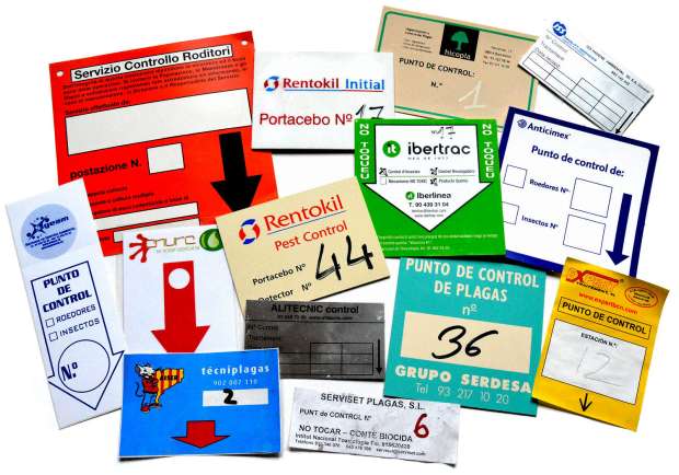 Un aspecto interesante es ver si en el cartel se especifica el tipo de punto de control, es decir, saber si es de desratización y/o de desinsectación. Como se puede ver en los carteles que aparecen en la fotografía no es una práctica común. En este punto, hay que indicar que por lo general, las empresas informan mediante carteles de todos los puntos de desratización. Sin embargo, no siempre se informa de los puntos de desinsectación. En una cocina, por ejemplo, podemos colocar unos pocos puntos de desratización, pero muchos de desinsectación. Por lo general, colocamos un buen número de trampas adhesivas para realizar un monitoreo de cucarachas en los puntos críticos de una cocina donde estas pueden proliferar. Y son muchos. Se hace prácticamente imposible indicarlos mediante carteles. Y mucho menos sobre un plano. Por tanto, lo que se suele hacer es indicar solo los puntos de desratización. Se hace muy difícil indicar todas las trampas sobre planos. Y más si tenemos en cuenta que el técnico puede añadir o retirar trampas según experiencia.