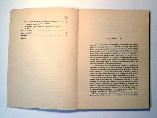 Esta obra de 1960 parece que fue la base para el monumental ‘Tratado de la previsión del papel y de la conservación de bibliotecas’ de 1973 [4]. Se trata de una obra enciclopédica en dos volúmenes que juntos suman 1048 páginas.
