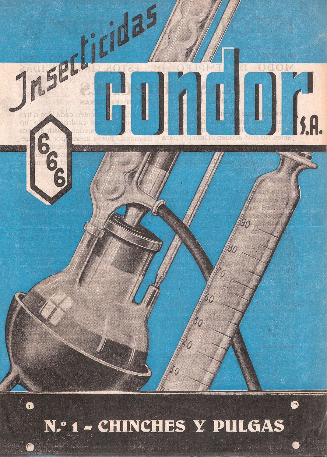 Recientemente he adquirido un folleto publicitario de la compañía Insecticidas Cóndor SA que explica de manera sucinta cómo eliminar chinches de cama y pulgas. Este folleto tiene un tamaño 16 x 22 centímetros y consta de cuatro páginas que se pueden ver reproducido en esta entrada (figuras 1 a 4). Si tuviera que fechar este documento sería entre 1945 y 1950. Daré detalle de mi conjetura.