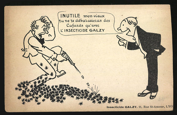 Hace poco descubrí un antiguo producto insecticida que desconocía. Se trata del Insecticida Galzy fabricado en Lyon por E. Galzy durante la segunda mitad del siglo XIX. Por lo que parece estaba formulado en polvo y todo apunta a que se tratara de pelitre [1]. La referencia más antigua que he encontrado es un anuncio aparecido en la publicación parisina Journal Amusant el 13 de abril de 1878: «ÉCONOMIE SÉRIEUSE. Gardez vos fourrures, plumes, lainages, tentures, etc. L’Insecticide foudroyant préserve infailliblement des mites, teignes , etc. — E. Galzy, fabricant, 28, rue Bugeaud, Lyon. Le kilogramme, 12 francs; 100 grammes, par la poste, 1 franc 95 cent.»