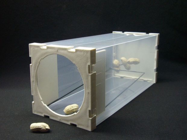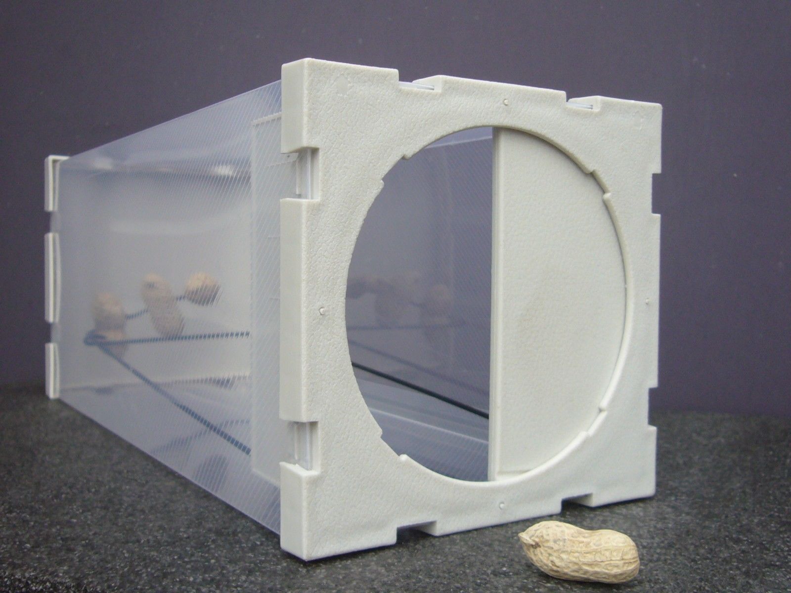 Buscando por Ebay he encontrado una jaula de captura interesante (figura2 1 y 2). Encuentro muy ingenioso la manera en que las puertas se cierran. En la mayoría de jaulas, la puerta se cierra por fuera. Sin embargo, en esta, las puertas se cierran por dentro cuando el roedor pisa la varilla que las mantiene abiertas. Otra novedad es que está fabricada en plástico y su montaje es cosa fácil (figura 3). Por sus dimensiones (28’7 × 12’5cm × 12’5 cm) puede servir tanto para atrapar a un ratón como a una rata de alcantarilla. Lo que no sé es si una rata adulta de alcantarilla no la destrozaría si la dejáramos allí metida unas horas. Su precio es atractivo, 8’99 dólares americanos. Pesa 275 gramos.