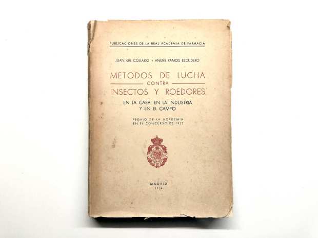 El libro ‘Métodos de lucha contra insectos y roedores’ se gestó de una manera particular. En 1952, la Real Academia de Farmacia propuso que, para poder optar al Premio de la Academia, las obras candidatas versaran sobre los métodos químicos y biológicos en la lucha contra los insectos y roedores. Por la calidad de los trabajos, se decidió repartir el premio entre Juan Gil Collado y Ángel Ramos Escudero. Ambos trabajos debían ser publicados en los Anales de la Academia. Pero se decidió que bien valdría unir los trabajos en uno solo y publicarlo en un tomo a parte de los Anales dada la falta de publicaciones sobre el tema en España. Gil Collado se hizo cargo de la descripción de los métodos de lucha y, Ramos Escudero, de la descripción química de insecticidas y raticidas. El resultado es una obra de 361 páginas muy interesante.