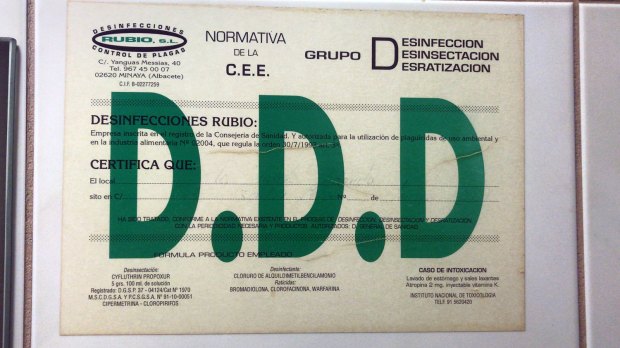 Esta mañana me he tomado un café en un bar. Por defecto, cuando entro en un establecimiento de hostelería, intento averiguar qué empresa realiza los servicios de control de plagas. De esta manera, me hago una idea de cómo está el mercado. Una de las maneras de saberlo es buscar el certificado de garantía. Cuanto más modesto es el bar, tanto más a la vista está. En la imagen superior, se puede ver el certificado de garantía que he encontrado en el bar. Estaba colocado de manera muy visible sobre el marco de la puerta que comunicaba la barra con la cocina. Como se puede leer, la empresa responsable de los servicios DDD es Desinfecciones Coral. De hecho, no es el nombre de una empresa, sino una marca comercial de Víctor Corbacho Antillano, si no me equivoco. Es curioso que, si alguien busca información en internet sobre Desinfecciones Coral, no encontrará nada de nada. Estamos en la era de la información y existen muchas empresas de nuestro sector de las que no circula información por internet. Tampoco sé desde cuándo Desinfecciones Coral está en el mercado. Yo empecé en 2004 en este sector y recuerdo que ya me encontré un certificado en algún bar de condición humilde. Es decir, en un bar en los que se huele la pólvora de los pistoletazos de la guerra de precios entre empresas por ver quién lo hace más barato.