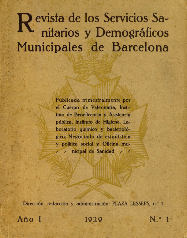 Entre 1929 y 1935 fue publicada la Revista de los Servicios Sanitarios y Demográficos Municipales de Barcelona, de la cual aparecieron 17 números [1]. La revista fue creada con vocación de periodicidad trimestral, aunque hubo años en los que no se cumplió con los cuatro números previstos [2]. En la editorial del primer número queda claro su objetivo: «Dar a conocer la labor coordinada que realizan las Instituciones encargadas de la higienización de la salud pública y de la asistencia a los ciudadanos a quienes el Municipio tiene el deber de amparar en sus dolencias o accidentes».