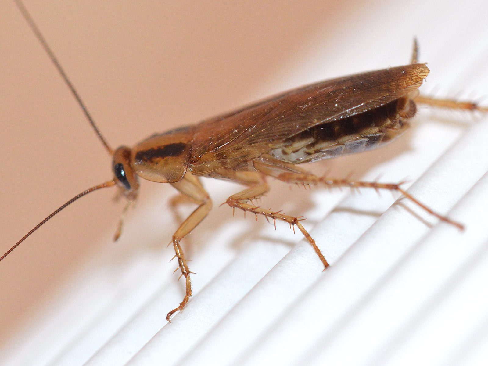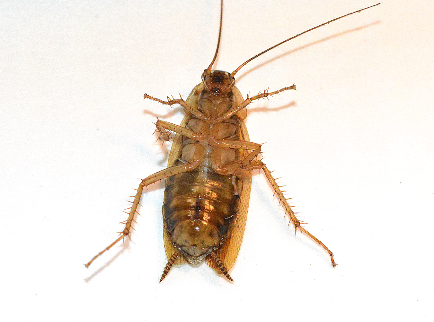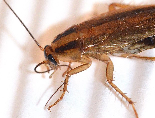 Hacía tiempo que no sacaba fotografías de una cucaracha germánica (Blattella germanica), auténtica plaga donde las haya. También es conocida como cucaracha de cocina, puesto que es en este ambiente donde mejor se encuentra, y cucaracha rubia por su color. Allí donde se almacene comida, allí podrá procrear esta cucaracha. Y se apaña bien con poca comida.