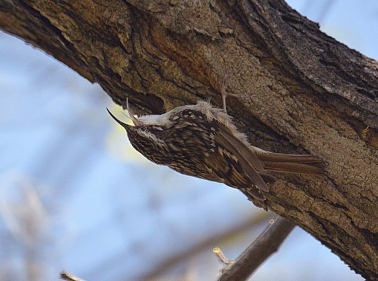 El agateador común, Certhia brachydactyla, es un ave distribuida por amplias zonas de la Península Ibérica. En la provincia de Barcelona, está presente en todo su territorio. Se lo puede encontrar en parque urbanos y suburbanos con arbolado. En las imágenes, se puede ver un agateador que estaba en el Parque de la Ciudadela de Barcelona. Por tanto, no es difícil encontrar uno. Otra cosa es distinguirlo, ya que trepa pegado al tronco de los árboles. Y su plumaje es un perfecto camuflaje para pasar inadvertido. En la imagen número 2, se puede ver sus plumas dorsales que provistas de colores similares al tronco de los árboles. Además, su discreción es tal que trepa siempre por la parte de sombra.