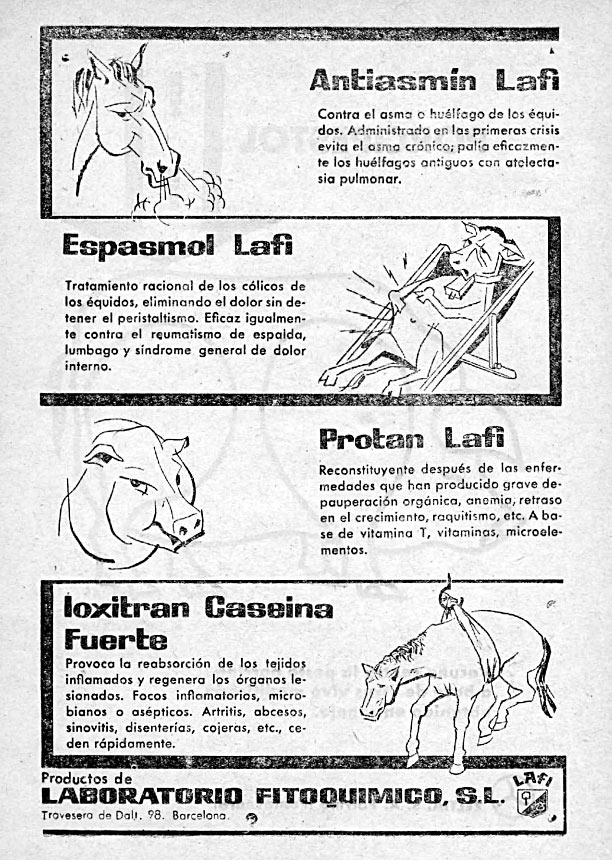 En 1974 fallece el fundador y se inicia un largo periodo menguante. En 1985, el heredero cambia el nombre de la sociedad por el de Laboratorios Lafi SL y traslada la sede a Lliçà de Vall. Parece que la empresa deja la innovación y vive de los productos desarrollados en el pasado. En la actualidad, en 2015, consta como sociedad liquidada. Ahora bien, Laboratorios Lafi no cerró de golpe, sino que lo ha hecho lentamente y con una historia truculenta. He encontrado información interesante en un comunicado emitido por la Agencia Española del Medicamento y Productos Sanitarios (AEMPS) en octubre de 2014 [2]. Parece ser que esta Agencia fue anulando entre 1996 y 2009 las autorizaciones de cada uno de los formulados de Laboratorios Lafi. Y esta acción de las autoridades competentes culminó en 2011 con la retirada de la autorización para fabricar, importar y comercializar medicamentos veterinarios. A pesar de ello, una sociedad llamada Pax Pharma SL, ubicada en la misma dirección que Laboratorios Lafi SL, siguió comercializando los mismos productos que carecían de autorización.
