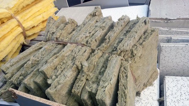 Fig 1. Contenedor de obra con lana de vidrio y lana de roca./ Desinsectador 04-2015