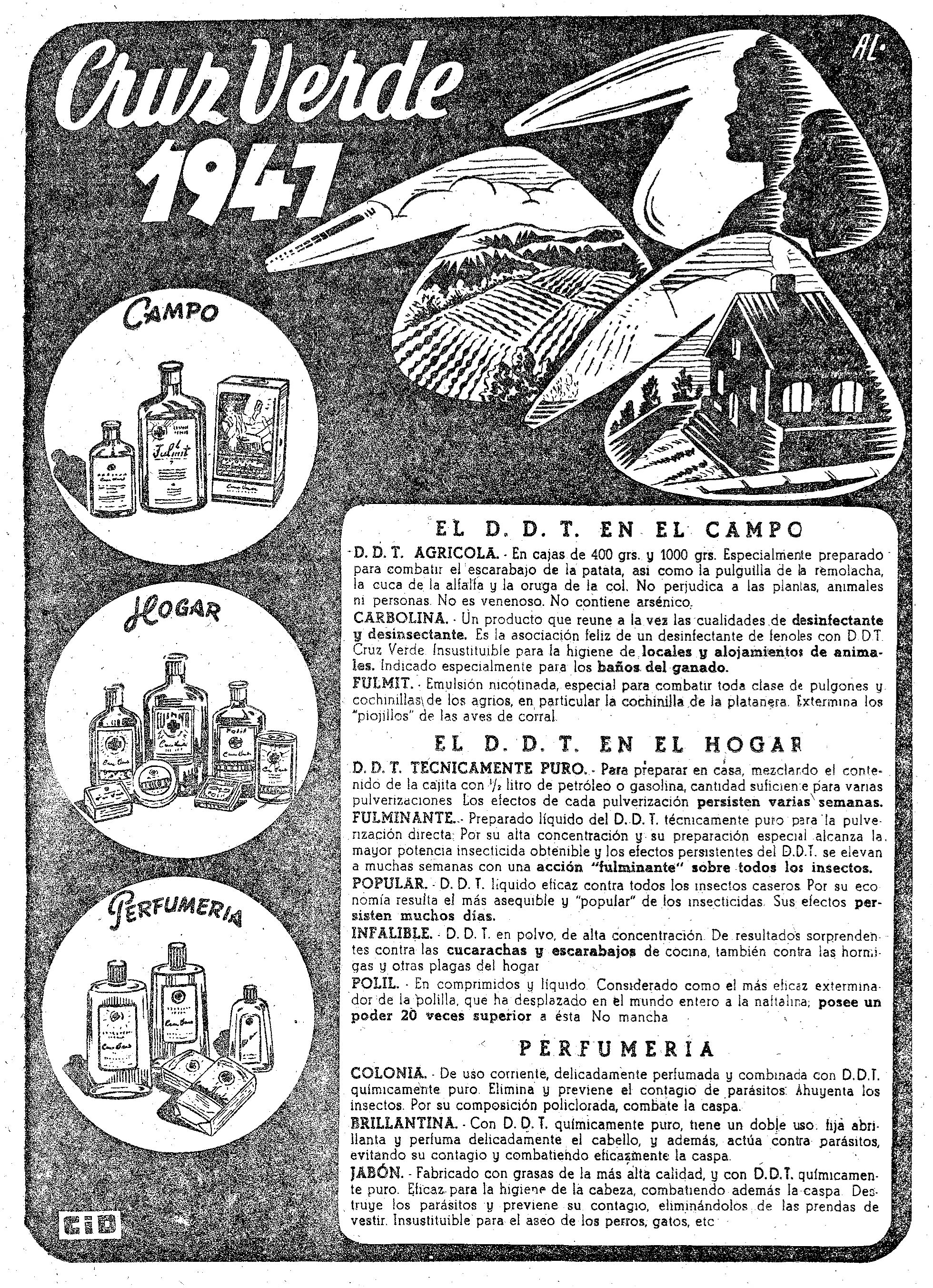 [4] C. Pradera. 10-05-2014. Nueva loción Cruz Verde de acción repelente (1957). El desinsectador y desratizador.