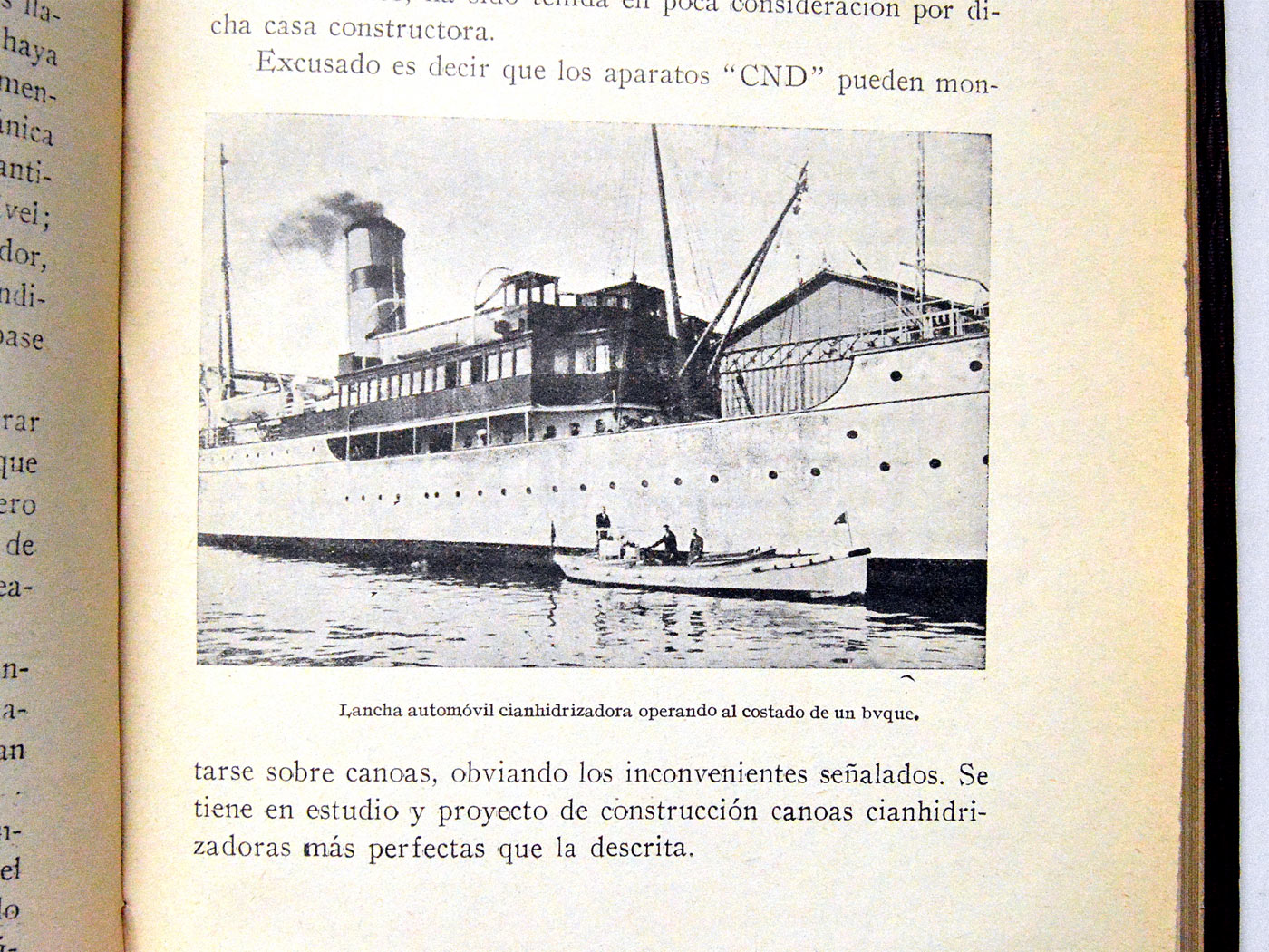 Buscando en librerías de viejo, encontré un libro que andaba buscando. Se titula ‘Manual de la desinfección por el ácido cianhídrico (a bordo y en tierra)’ y fue escrito por el médico Vicente Cebrián Gimeno. Se trata de un texto de 360 páginas muy interesante, ya que se describe toda la tecnología usada en a finales de la década de 1930 para fumigar con ácido cianhídrico, también conocido como ácido prúsico. Su lectura me ha servido para hacerme una idea de los diversos sistemas existentes. Un detalle de este libro es que no aparece el año de publicación, ya que no consta en ninguna parte del libro. Sí que aparece en algún pasaje alguna mención a artículos científicos publicados y de ello deduzco que el texto fue escrito en 1929. Y quizás publicado ese mismo año o al siguiente.