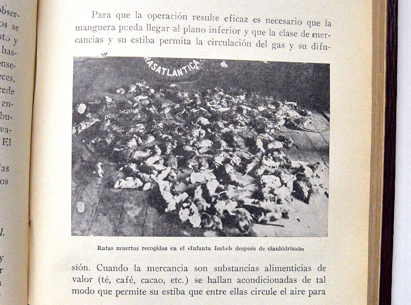 Aunque el libro lleva en su título el término de desinfección, considero que este no es correcto, puesto que el ácido cianhídrico se usaba principalmente para la desinsectación y la desratización. Aunque el autor piensa en la eliminación de virus y bacterias patógenos a través de la eliminación de vectores. El cianhídrico es un compuesto fumigante que sustituyó por ser más efectivo al dióxido de azufre, el cual se generaba mediante la quema de azufre [1]. A principios de la década de 1920 empezó a ser usado con fines sanitarios. Primero en la fumigación de barcos que llegaban a puerto de zonas de riesgo y, luego, en el tratamiento de medios de transporte y locales para combatir a la chinche de cama que tanto abundaba en España y en toda Europa [2].