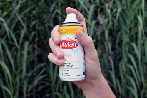 Veamos ahora qué sustancias repelentes de uso tópico tenemos en el mercado español. Tenemos por una parte sustancias químicas sintéticas como DEET, icaridina y IR3535. Y otras de origen natural como citriodiol, aceite de citronela, piretrinas [5], aceite de lavanda y geraniol. Estas sustancias no son todas iguales. Las tres primeras sustancias, las sintéticas, actúan contra un mayor número de artrópodos. Además, estas actúan durante más tiempo. Aunque esto no es un problema para el uso de las otras sustancias de origen natural porque, cuando se formula un producto, se le añade mayor concentración. Por tanto, cuando compremos un producto es importante saber que cuanta más sustancia tenga, mayor tiempo de protección. Aunque la relación entre cantidad de sustancia y tiempo de protección no es una relación lineal. Llega un punto que por más cantidad de sustancia que se añade, el tiempo de protección no aumenta casi. Hay que hacer constar que, aunque el aceite de citronela, el aceite de lavanda y el geraniol son sustancias que por ser naturales parece que sean mejores, lo cierto es que son menos repelentes que el resto. Así que si usamos productos a base de estas sustancias, habremos de frotarnos con ellos varias veces para prolongar su efecto.