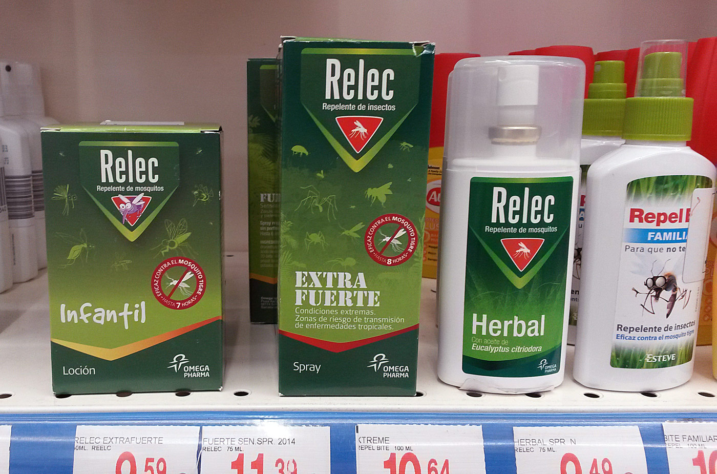 Fig 1. Repelentes en estantería de supermercado./ C. Pradera 07-2015