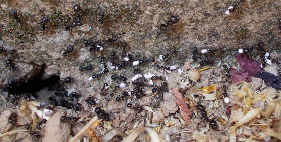 En segundo lugar, las hormigas no siempre suben de la calle. Hay muchas especies que pueden establecerse en un edificio sin necesidad de tierra ni nada parecido. Así que no siempre suben de la calle.