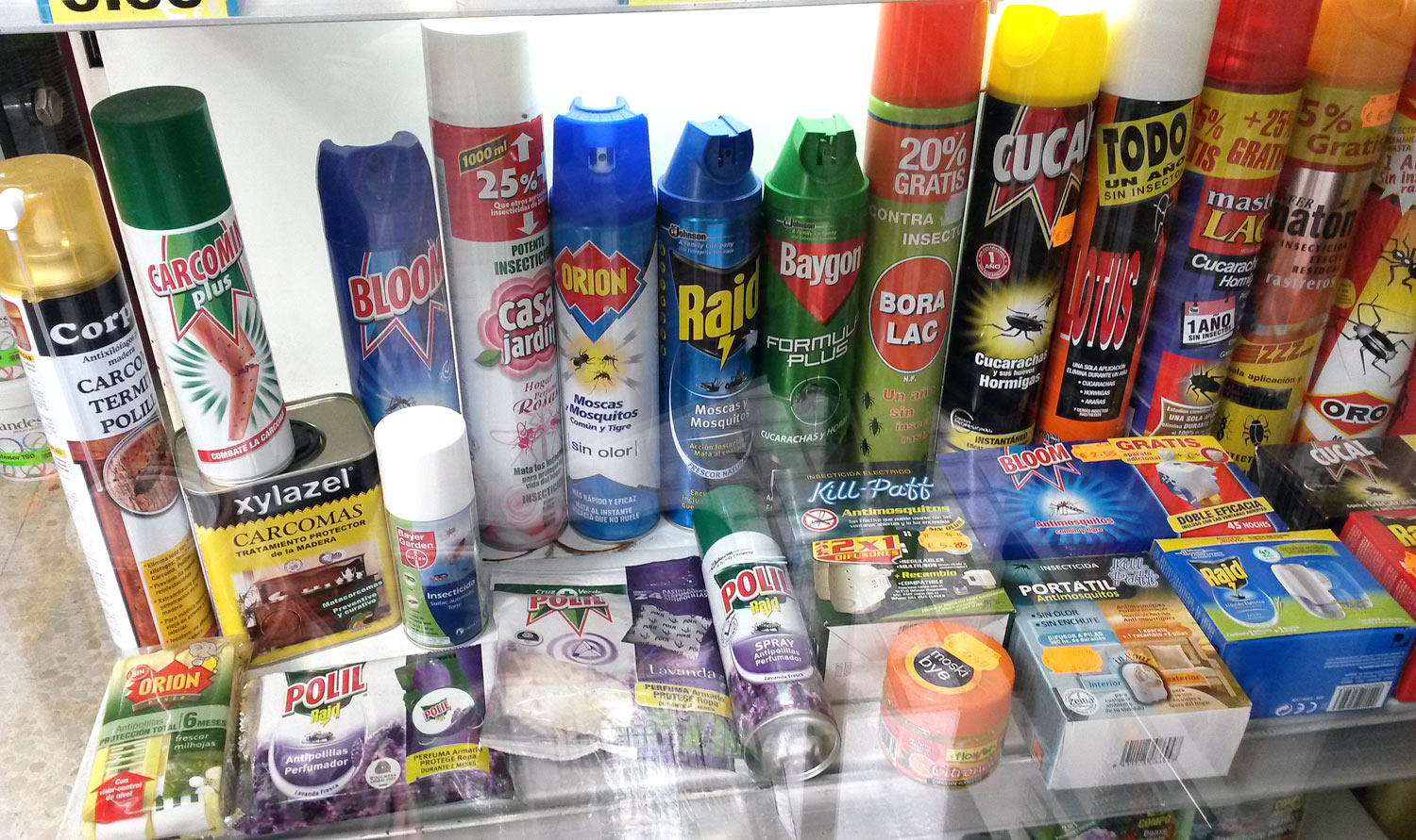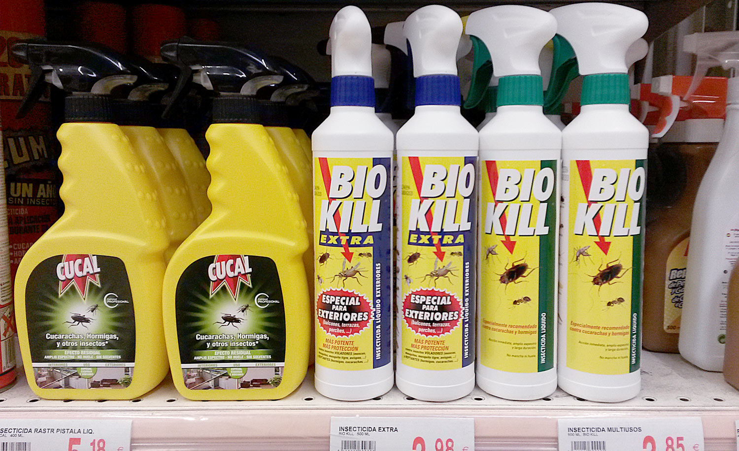 Y he aquí, que entramos en un terreno oscuro. Porque, ¿qué lleva un producto insecticida? Hay que remarcar la opacidad con que el Minsiterio de Salud permite que los fabricantes de biocidas coloquen sus productos en el mercado. Baste un ejemplo. Esta es la composición que aparece en un espray insecticida tipo estándar contra rastreros: deltametrina 0,10%, tetrametrina 0,10%, nafta disolventes, excipientes y propelentes csp 100%.