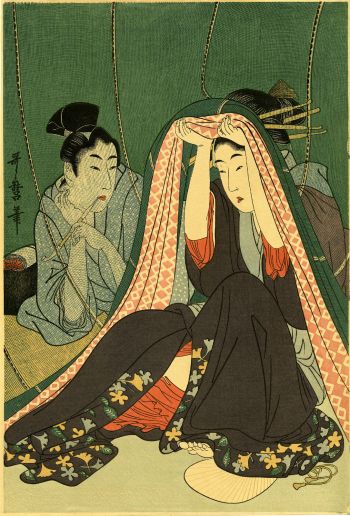 Cuenta la historia que Ueyama recibió en 1885 semillas de pelitre de un comerciante americano. En 1890 se le ocurrió mezclarlo con las varillas de incienso. Y creó así una nueva manera de aplicar el producto y librarse de los mosquitos. Pero parece que no estaba muy satifecho, puesto que para él duraban poco tiempo. Y fue hacia 1895 cuando a su mujer, Yuki Ueyama, se le ocurrió de hacer una varilla en forma de espiral para que durara más tiempo. Este invento, como cualquier otro, apareció por la confluencia de los hechos. Y creo yo que fueron dos. Por una parte, los japoneses tienen un problema gordo con los mosquitos. Es cierto que, en general, la humanidad lo tiene. Pero en algunos lugares se reproducen más que en otros. En la imagen número 4, se puede ver una bella pintura de Kitagawa Utamaro (1753-1806) en la que se muestra la vida doméstica bajo la mosquitera. Esta estampa debía ser algo común en aquel país. Por otra parte, estaba el amplio uso en Oriente de las varillas de incienso y de otros extractos vegetales. Había una necesidad y un objeto inspirador.