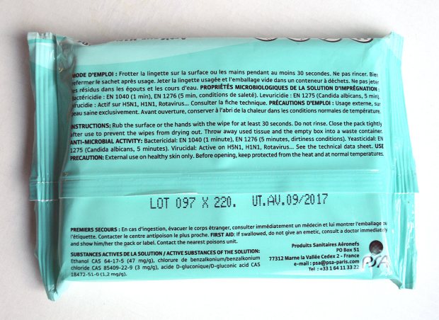 Fig 3. Toallitas germicidas para aviones./ C. Pradera 09-2015