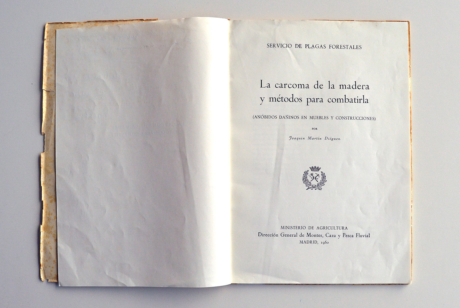 – J. Martín Diéguez. 1960. La carcoma de la madera y métodos para combatirla. Anóbidos dañinos en muebles y construcciones. Servicio de Plagas Forestales, Ministerio de Agricultura, Madrid. 57 pp. 24,5 x 17 cm. Depósito legal M 5.442-1960.