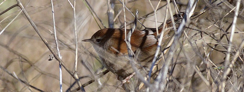 Como se puede ver por su pico, es un ave insectívora. Así que vivir cerca del agua le da grandes ventajas. Tiene un plumaje con un color que le permite esconderse entre los arbustos. Y más en invierno cuando solo quedan ramas desnudas. Dos asepctos me resultan descriptivas. La primera es que tiene unas alas muy pequeñas en comparación con otras aves. Esto se debe a que no realiza grandes vuelos y a que debe moverse con soltura entre la maraña de ramas. La segunda es el juego que realiza con su cola. En la imagen número 2 se puede ver la posición habitual de la cola cuando está en una rama, queda muy erguida mirando hacia arriba. Este detalle me sirve a mí para distinguir de lejos a un ruiseñor.