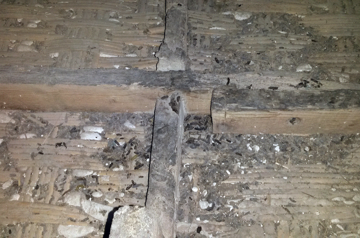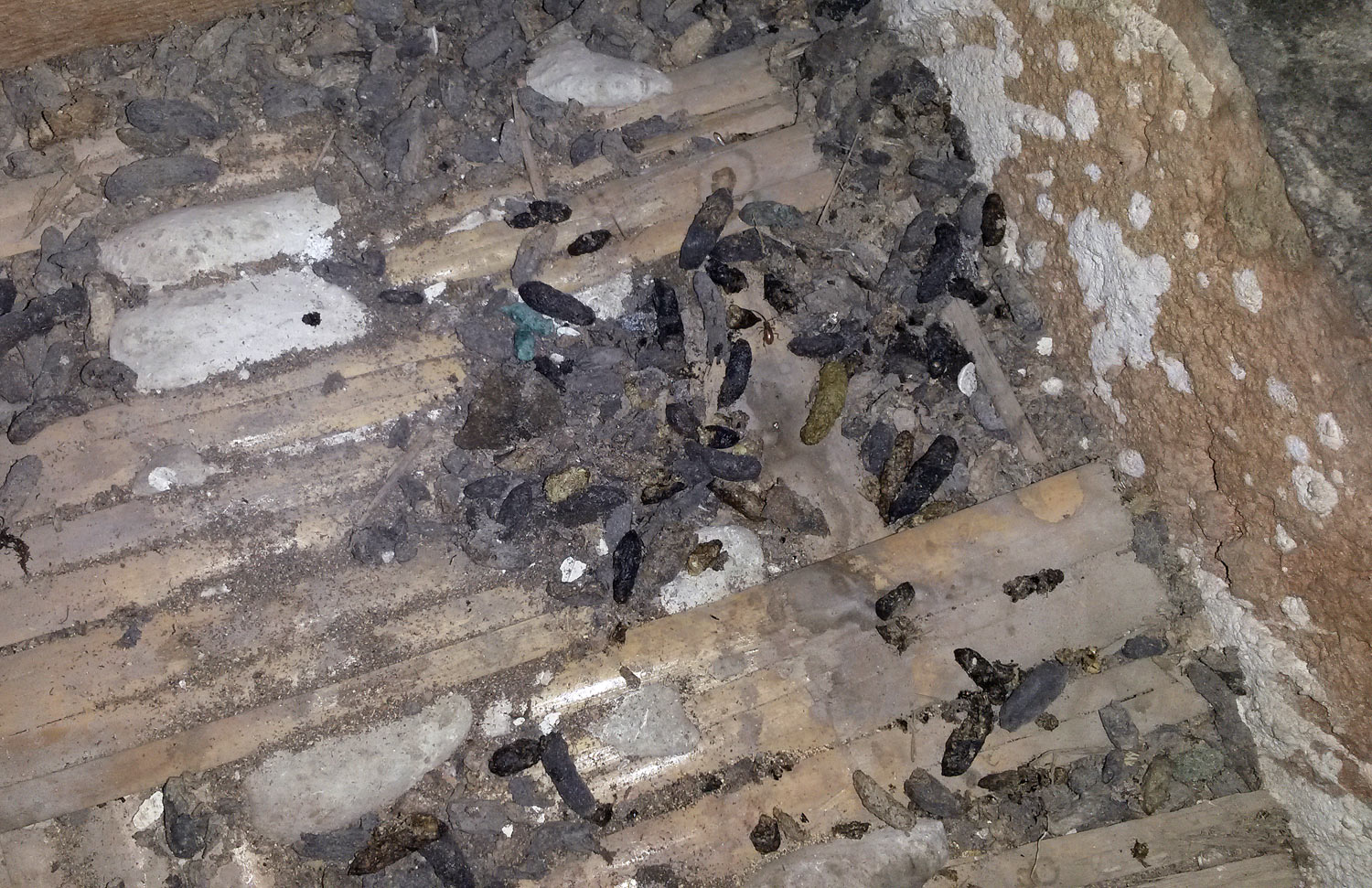 Fig 6. Excrementos de rata negra sobre un techo de cañizo./ C. Pradera 12-2015