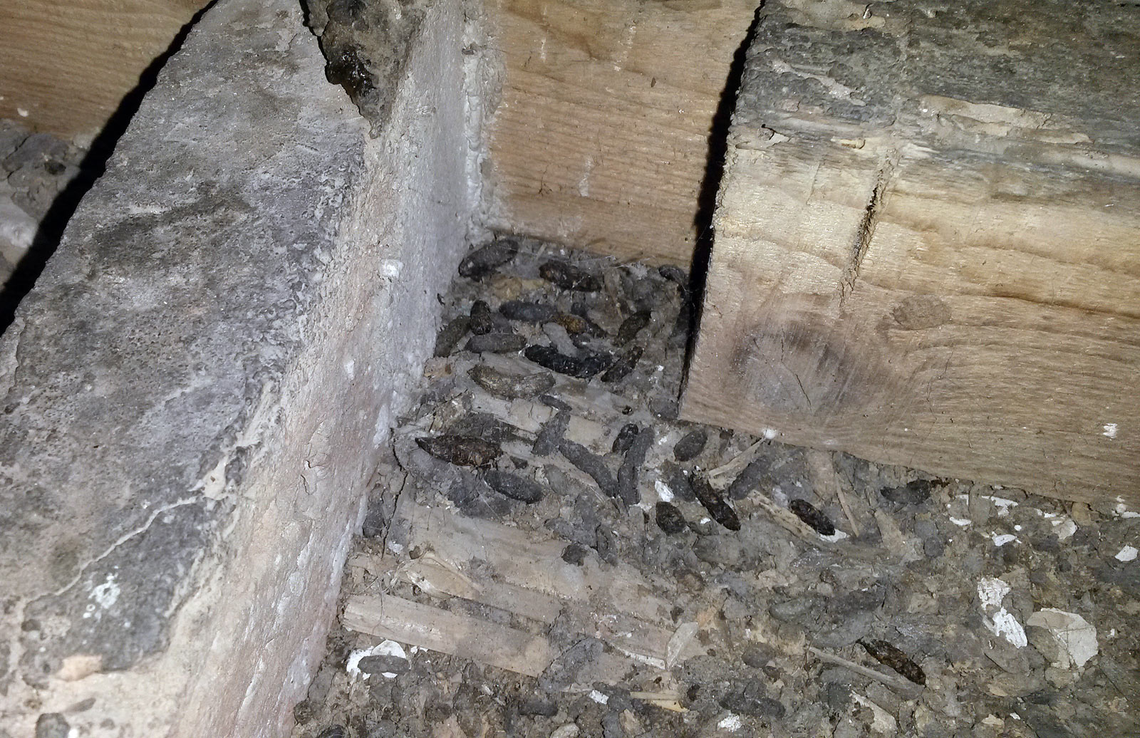 Fig 4. Excrementos de rata negra sobre un techo de cañizo./ C. Pradera 12-2015