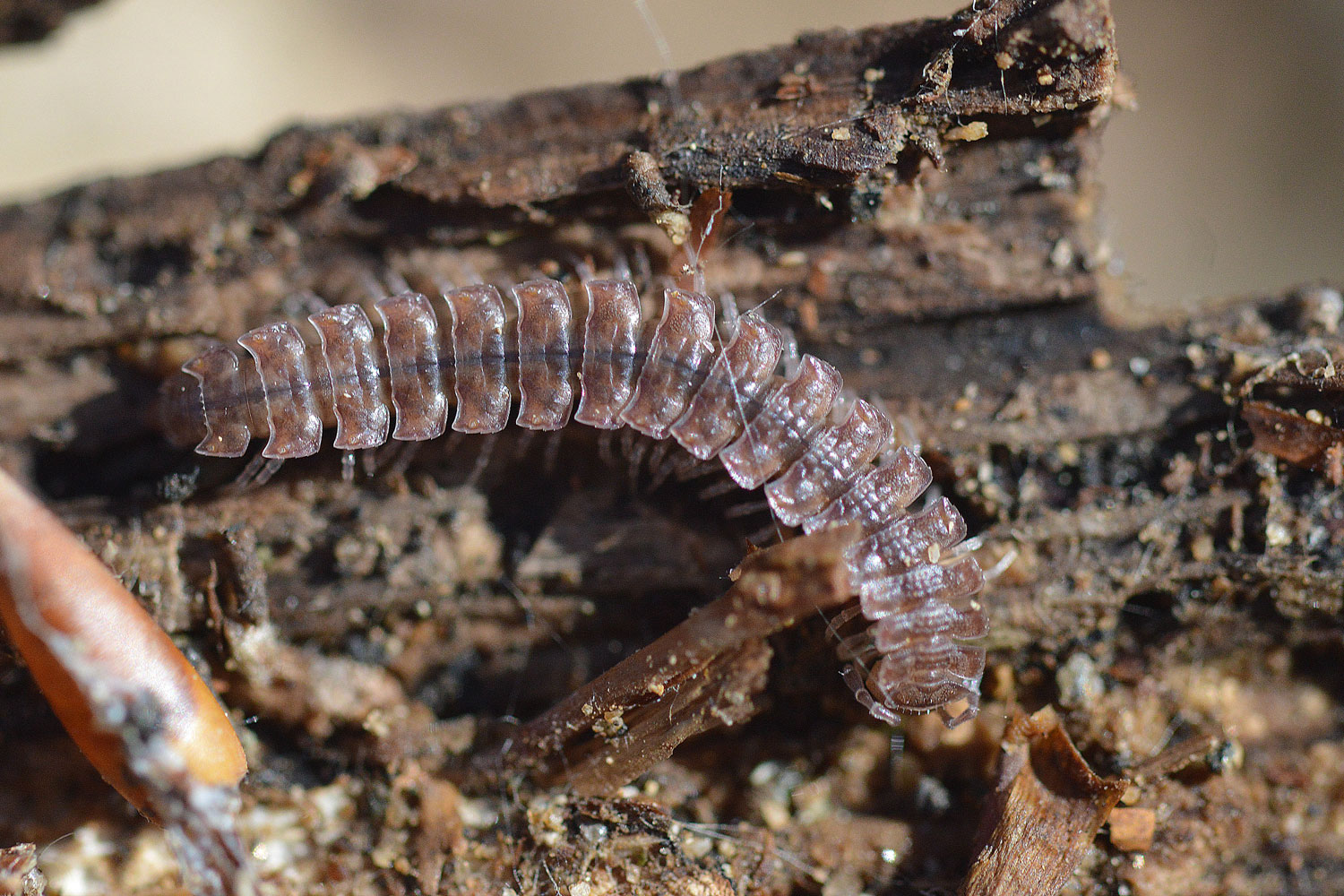 No es difícil encontrarse con algún milpiés de este orden si se busca en lugares húmedos de parques y jardines urbanos. Por lo menos, esto he constatado yo removiendo tocones y troncos buscando insectos xilófagos. En las imágenes 8 a 11, se pueden ver algunos que se encontraban en un alcorque en la ciudad de Barcelona. Estaban debajo de la tela que se suele colocar cubriendo el suelo para mantener la humedad. La colocación de tela es un elemento interesante, ya que da vida a los invertebrados.