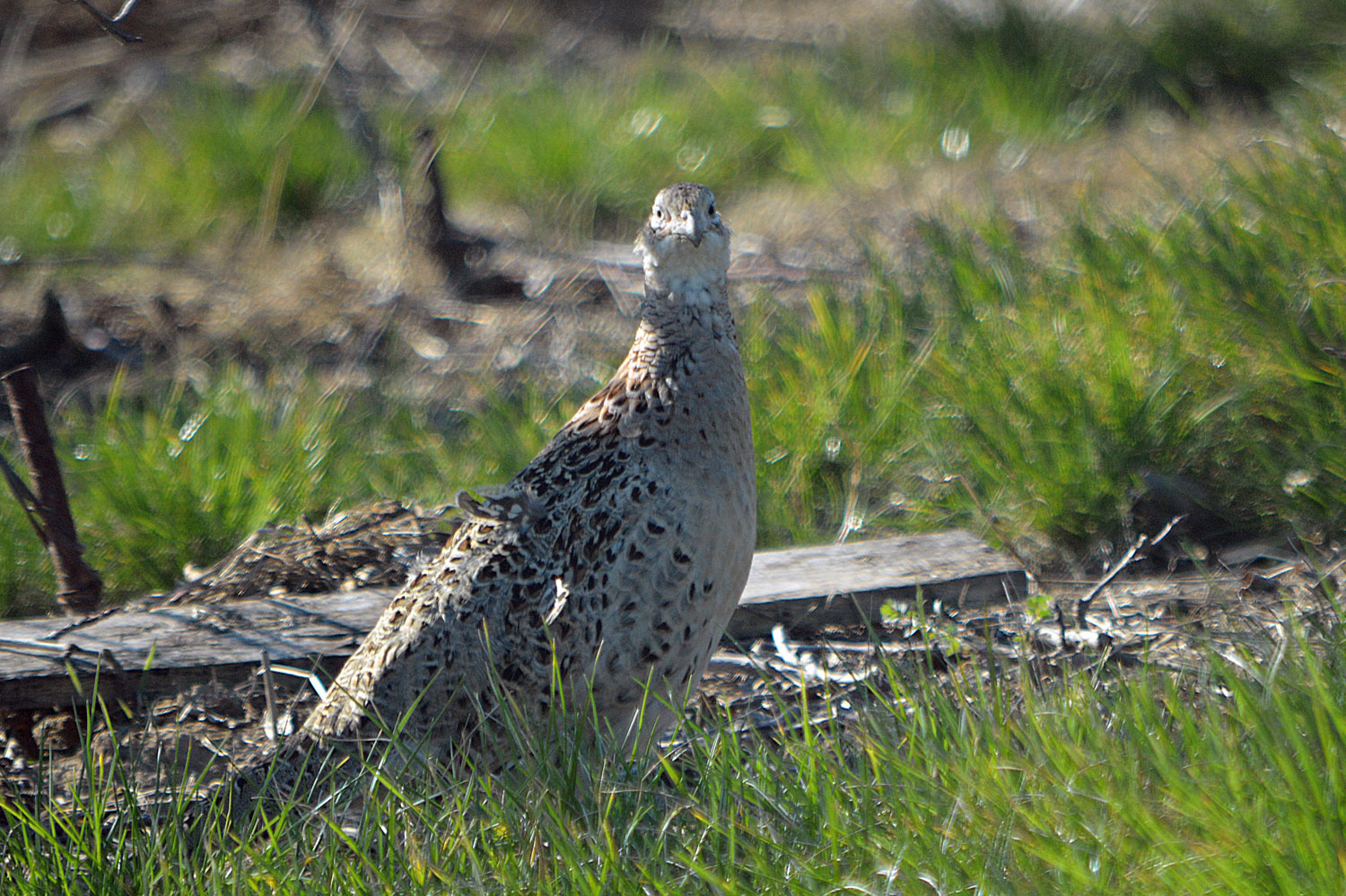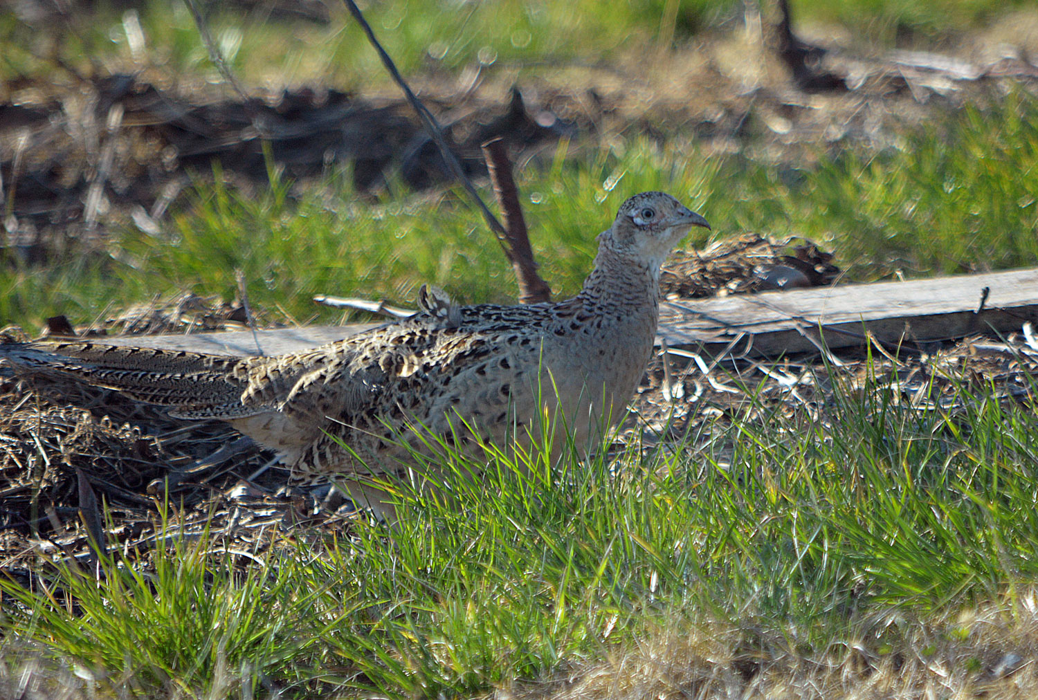 Es interesante lo extendido que está el faisán común (Phasianus colchicus). Por lo menos lo constato en la zona donde resido. Cerca de casa, en el río Besós, entre las poblaciones de Santa Coloma de Gramenet y de Montcada, se puede ver algún faisán entre la vegetación cerca de la orilla. Tiene un canto particular que lo hace inconfundible. En esta zona he podido hacer alguna fotografías, aunque sin mucha definición. Sin embargo, ayer estuve en Sant Pere Pescador (Alt Empordà) y me encontré con una pareja de faisanes a los cuales pude retratar. En las imágenes se puede ver a un macho y a una hembra.