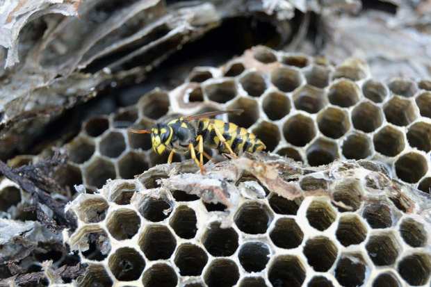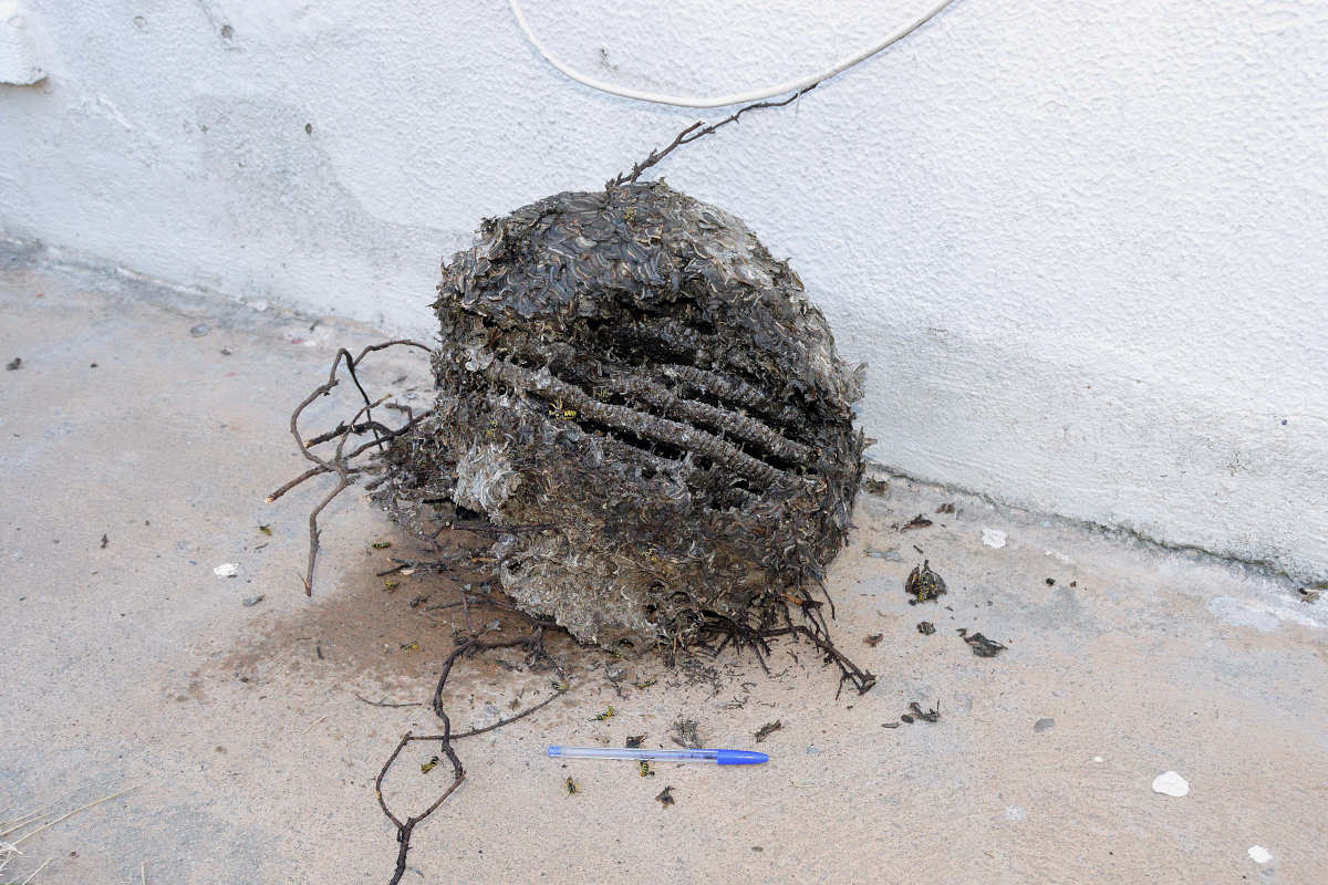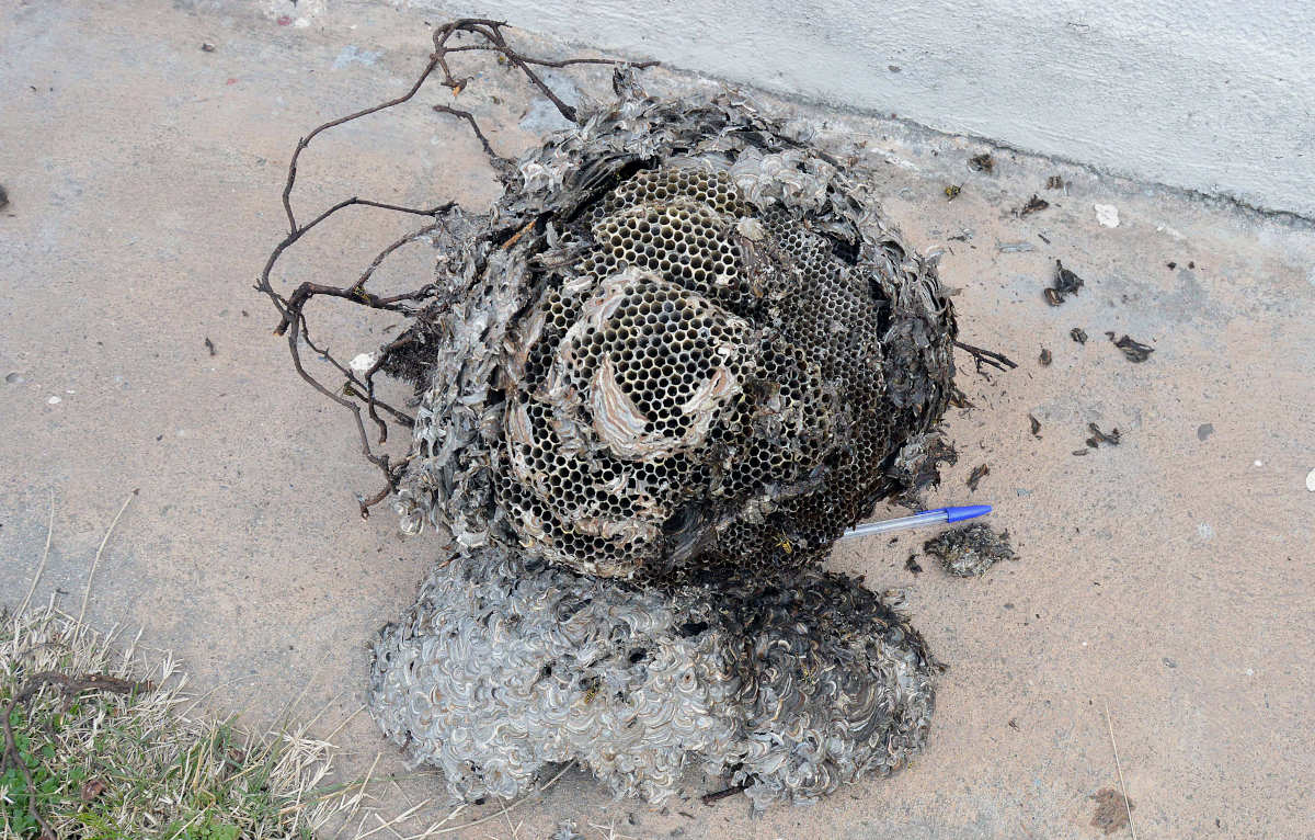 En el noreste de la Península Ibérica donde vivo, es habitual Vespula germanica. Es una avispa con gran capacidad de adaptación al medio urbano. El nido habitual en el medio natural suele ser bajo el suelo. En cambio, en el medio urbano tiene un sinfín de lugares donde ubicar el nido. En estos años que llevo trabajando en control de plagas, he visto ubicaciones variadas. Ahora bien, la norma es que busquen lugares protegidos como el hueco de una doble pared, un cajón de persiana, una cámara de respiración, el alero de un tejado, etc. Si el espacio se le queda pequeño al crecer la colonia, adapta la colocación de los panales y empieza a construirlo en el exterior o en lugares anexos. En un caso, pude ver panales colocados casi en vertical.