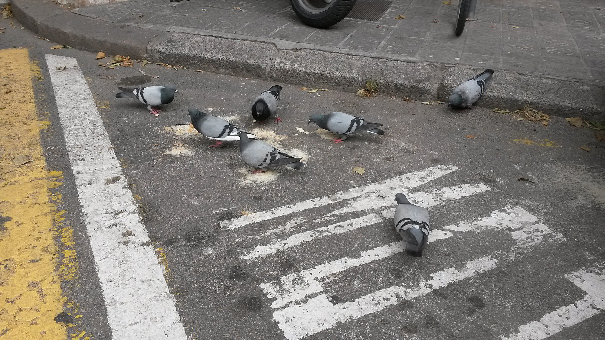 Fig 1. Palomas en una calle de Barcelona./ C. Pradera 2015