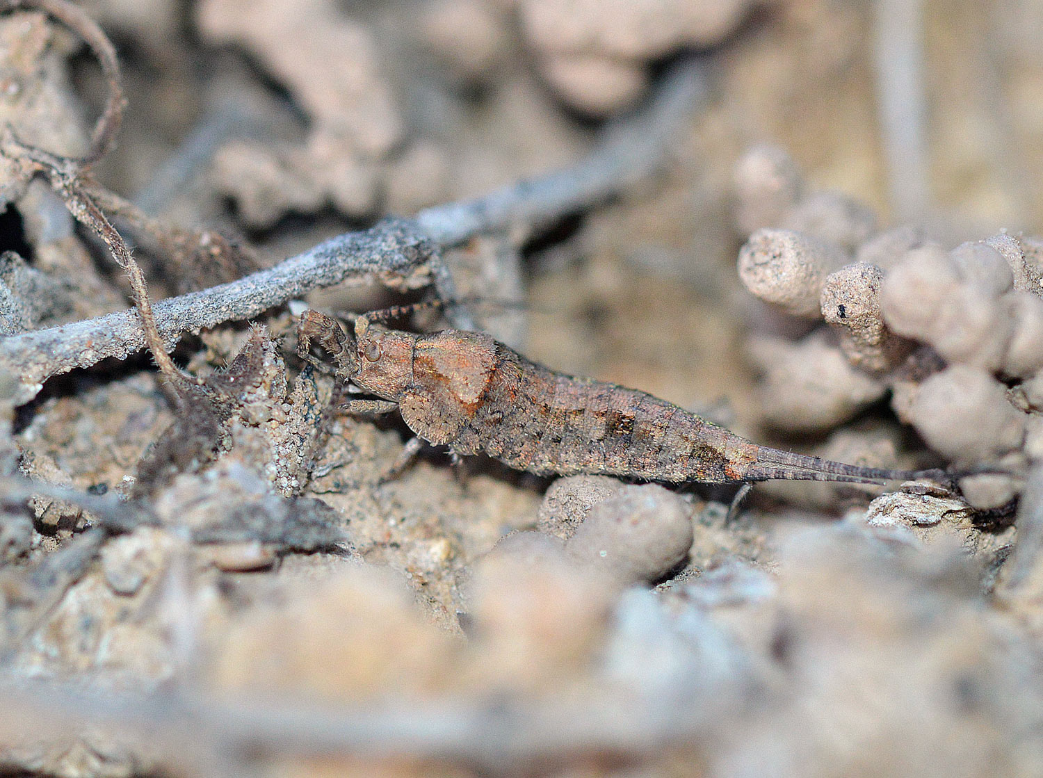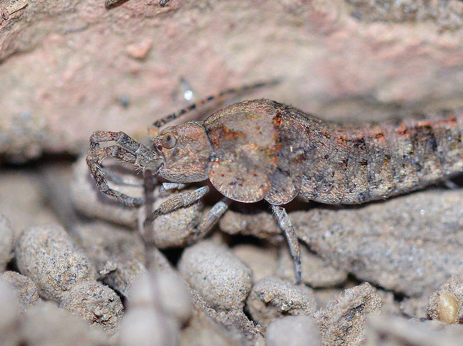 Encontré debajo de una piedra un pececillo de cobre. Me encontraba en Abiego, pueblo del Somontano de Aragón, Huesca. Al quedar al descubierto, corrió a esconderse. Con un palito lo toqué, y dio un gran salto. Típica maniobra de evasión de los insectos que pertenecen al orden de los arqueognatos (Archaeognatha). Es por ello que también se los conoce como saltadores de roca. Lo estuve mareando un rato para poder tomarle unas fotografías.
