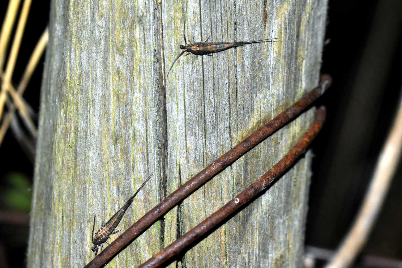 Addenda. Añado fotografías de pececillos de cobre de la familia Machilidae que encontré en Montagut i Oix, Garrotxa (figuras 7 a 12). las fotografías fueron tomadas por la noche sobre los postes de una valla que rodeaba un campo.