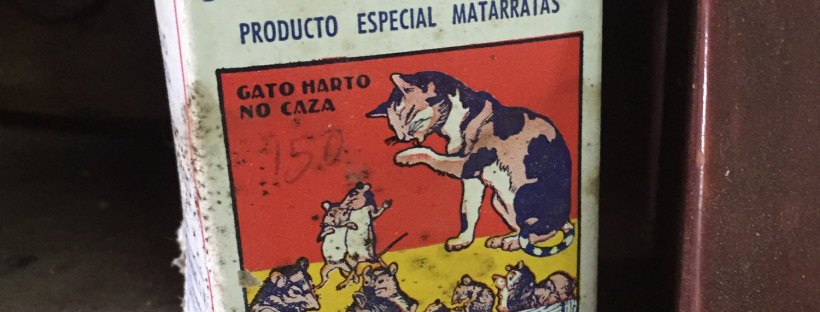 En segundo lugar, el texto explica que Nogat tenía un amplio y fiel público. Desde que fue lanzado el Matarratas Nogat en 1923 por parte de los Laboratorios Sókatarg de Barcelona [1], supo ganarse pronto al consumidor. A pesar de la aparición de los productos anticoagulantes en la década de 1950, Nogat se mantuvo como uno de los rodenticidas más utilizados. La fórmula fue fiel al fosfuro de zinc (P2Zn3). Como ya he comentado, ha sido una de las mejores materias activas contra roedores que ha existido. Actuaba de manera rápida al ser de acción aguda, no creaba recelo y, por su modo de acción, imposible que pudiera producir resistencia. Como ya dejé escrito en una entrada anterior, fue utilizado hasta finales de la década de 1970 por el Ayuntamiento de Barcelona en las campañas de desratización en el alcantarillado [2].