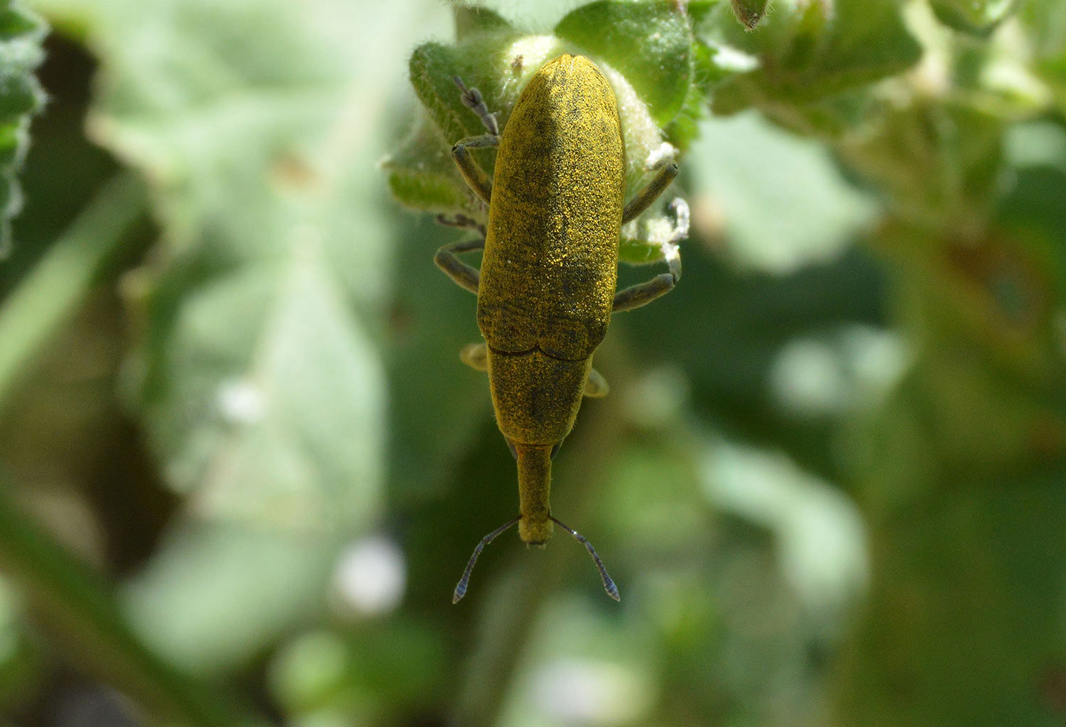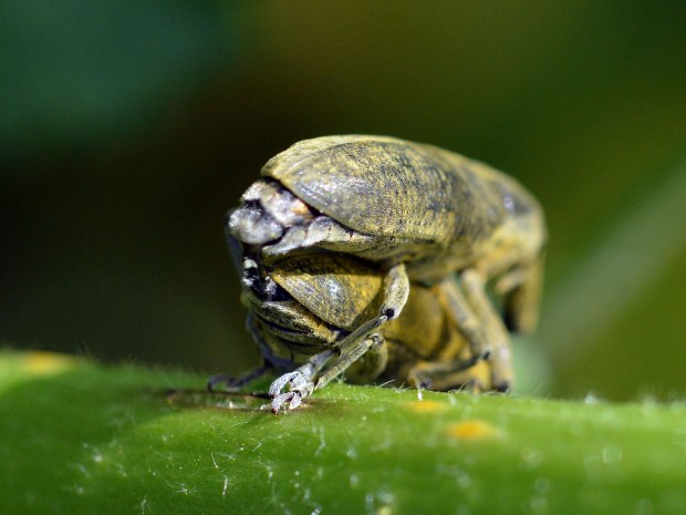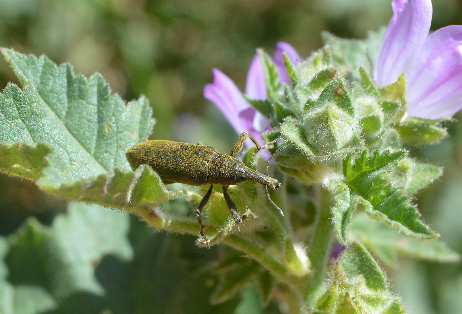 Andaba yo de paseo junto al río Besòs, a la altura de Sant Adrià del Besòs, cuando me paré ante lo que parecía una malva (Malva sylvestris). Mi mujer me dijo: «¡Mira!». Y señaló con su dedo hacia una ramita. Había una pareja de gorgojos. Uno montado sobre otro. La hembra abajo. Y el macho arriba bien amarrado y estirando su genital que, como una lanza, se doblaba hacia la hembra. Saqué la cámara para retratar tan tierna escena. Y entonces vi que no solo había esta pareja, sino muchas más. Había tropezado con lo que parecía una bacanal de gorgojos.