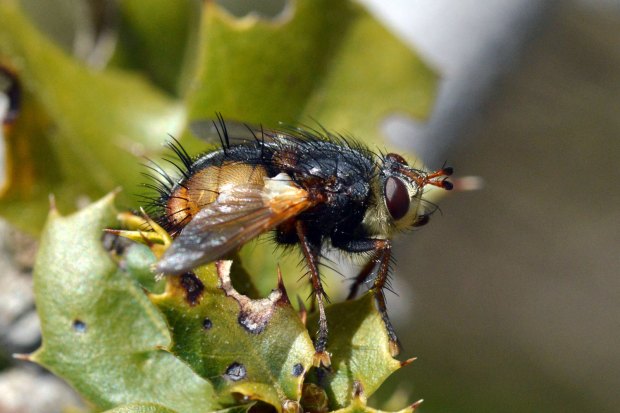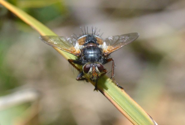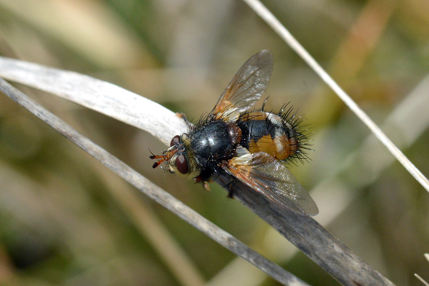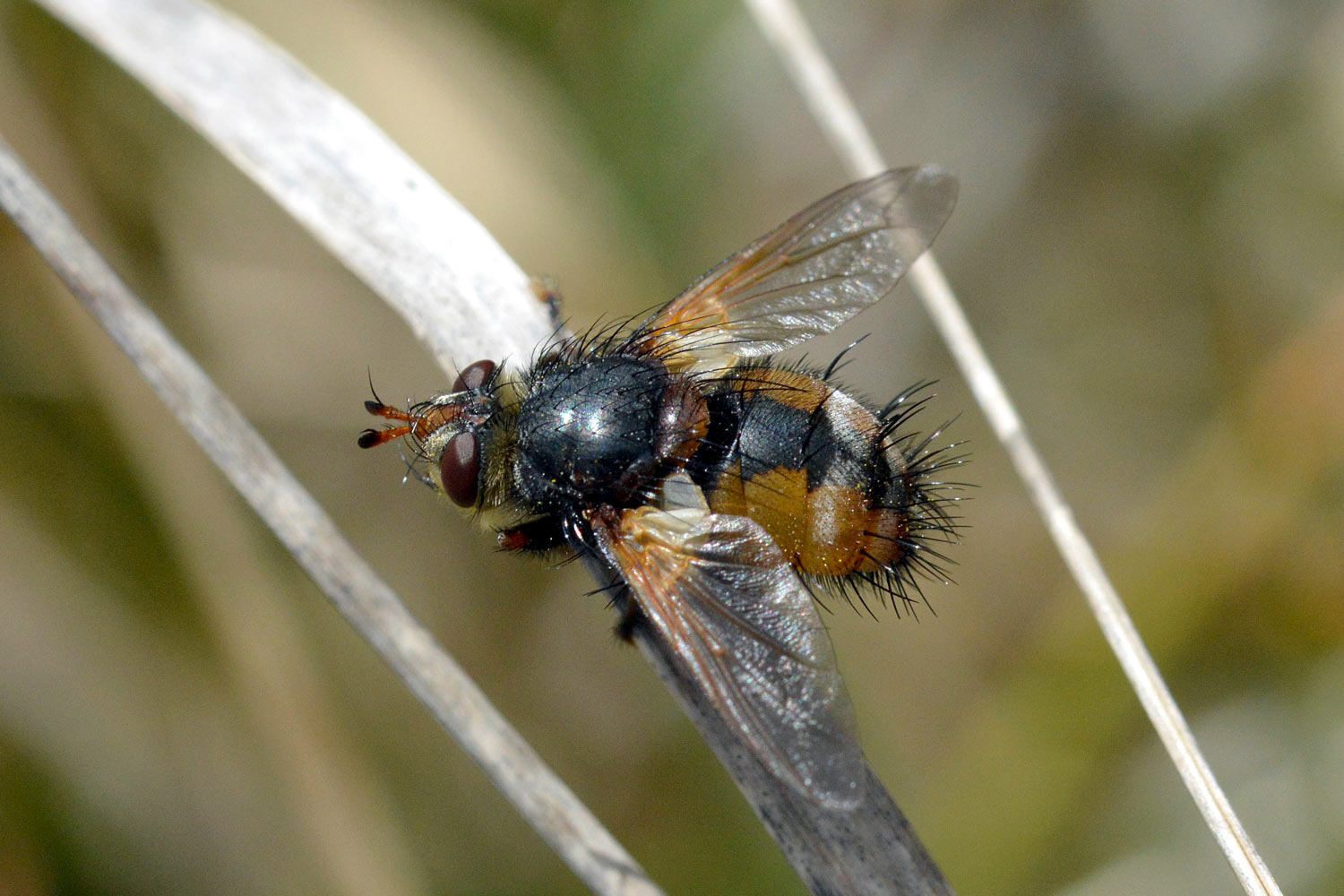 En esta entrada se pueden ver fotografías de dos especies de mosca de la familia de los taquínidos (Tachinidae) que he tomado recientemente. Se trata de dípteros de gran tamaño que, por lo general, se caracterizan por ser parasitoides de otros insectos como mariposas (Lepidoptera) o escarabajos (Coleoptera). En la Península Ibérica se cuentan, por lo bajo, con más de 500 especies documentadas [1].