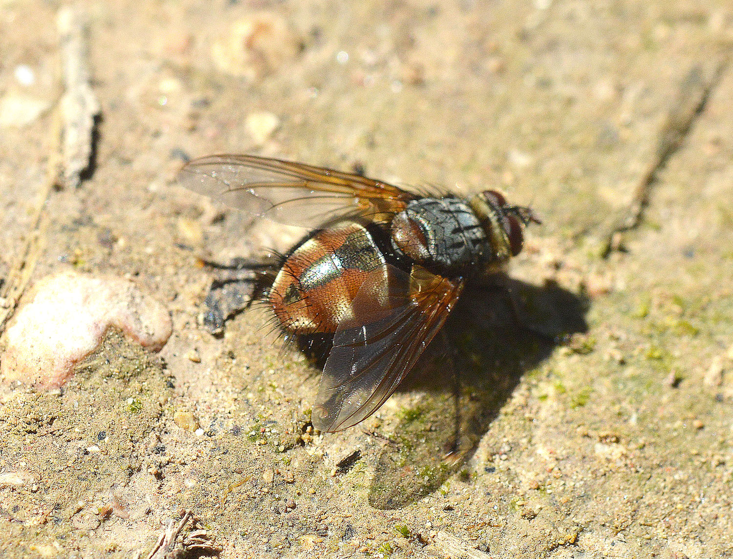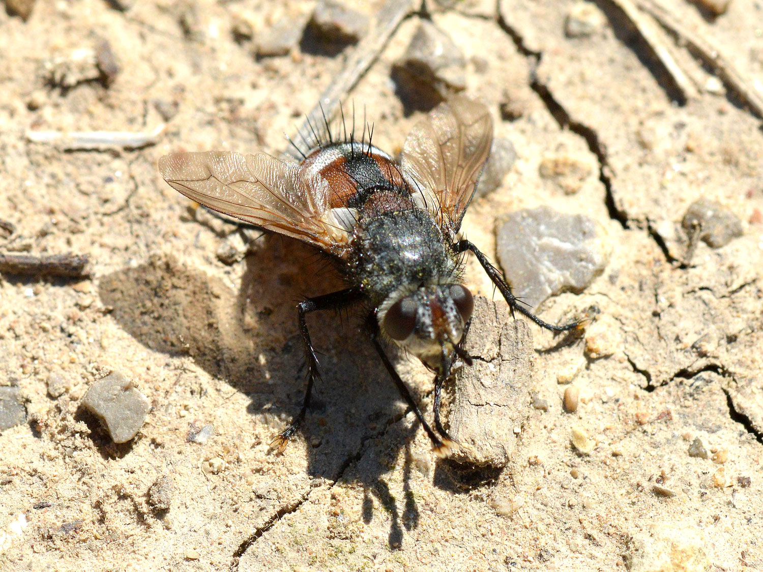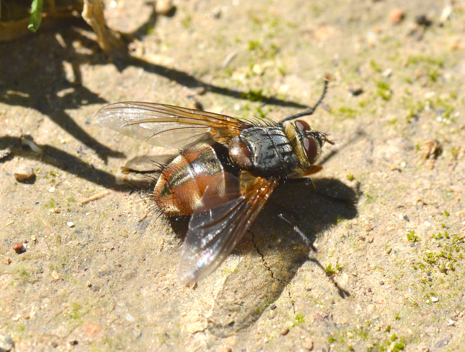 En esta entrada se pueden ver fotografías de dos especies de mosca de la familia de los taquínidos (Tachinidae) que he tomado recientemente. Se trata de dípteros de gran tamaño que, por lo general, se caracterizan por ser parasitoides de otros insectos como mariposas (Lepidoptera) o escarabajos (Coleoptera). En la Península Ibérica se cuentan, por lo bajo, con más de 500 especies documentadas [1].