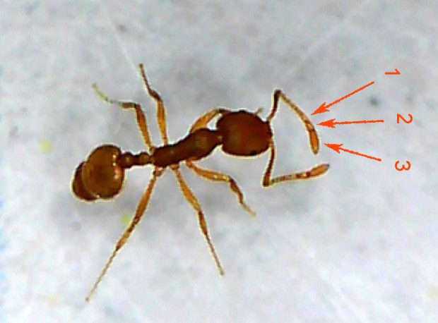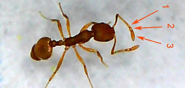 Fig 2. Imagen de probable Monomorium pharaonis. Maza antenal dividida en 3 artejos./ Manuel Pérez 2014