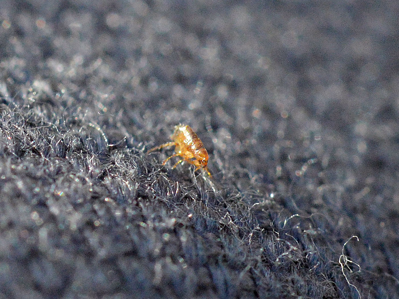 Atendiendo a la parte enfocada, la cabeza, una especie con la que podría coincidir es Pulex irritans. Es una especie común en animales domésticos y en depredadores.