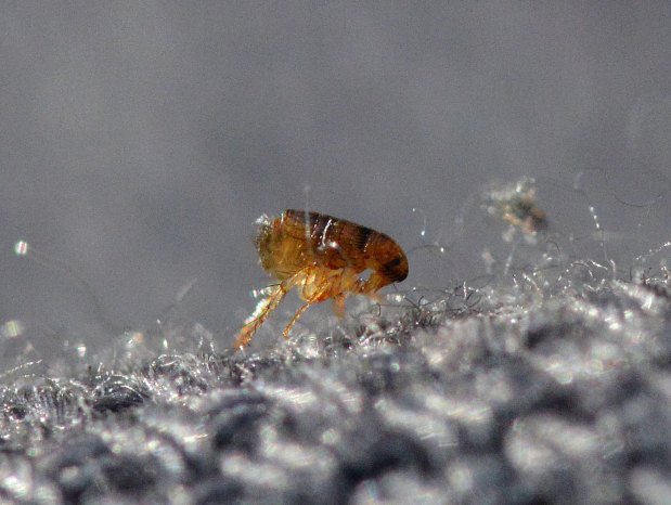 Caminé hacia la furgoneta. Cuando llegué, frené en seco. Empecé a mirar si llevaba más pulgas. Vi una que trepaba por el pantalón. Saqué un tubo para muestras y la cacé. Luego vi otra y otra. «¡Joder!» Las metí también en el tubo. Empecé a sacudirme el pantalón. Levanté las perneras y observé. No vi nada trepando entre mis pelos. Luego di fuertes pisotones contra el suelo. Flamenco del malo. Pasó un abuelito y me miró. Volví a mirar mis pantalones. Vi otra pulga trepar. Entonces me dije que a esta la retrataba. Monté el objetivo macro en la cámara. Ella, ajena a mí, progresaba en su carrera por alimentarse.