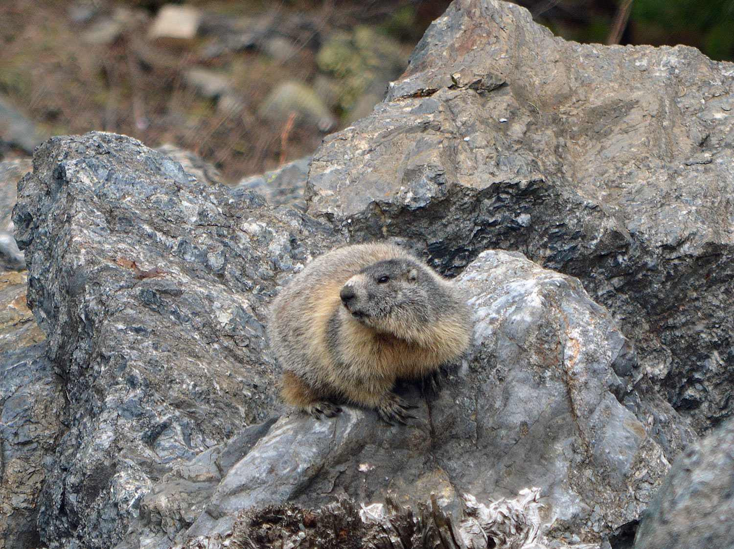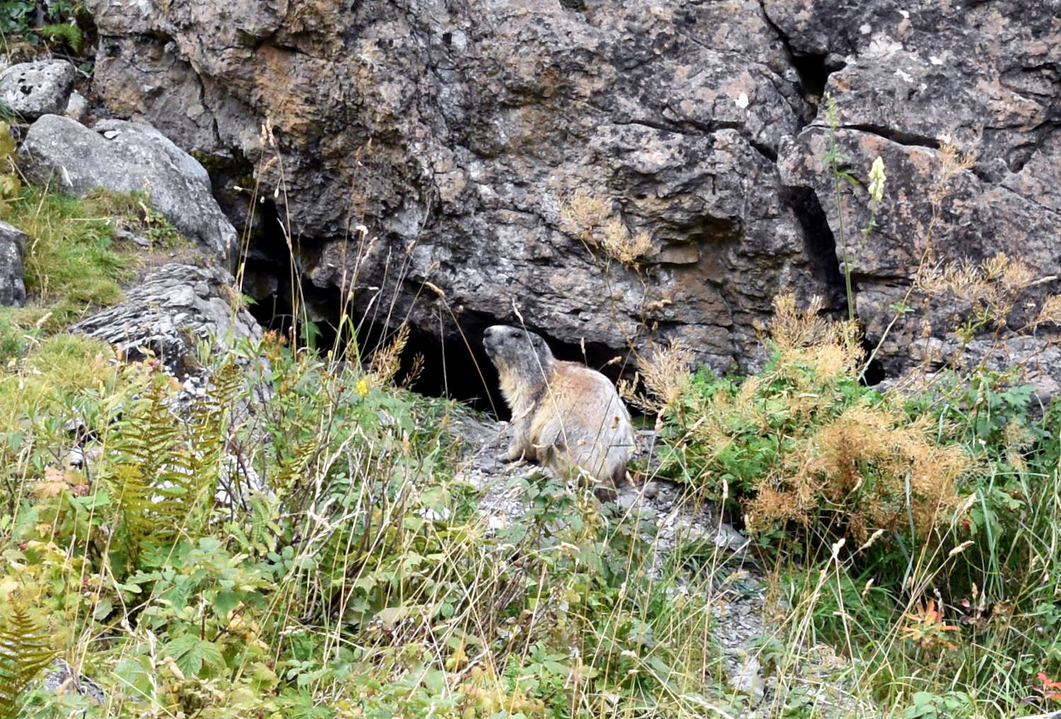 Al llegar a los Llanos del Hospital, en la parte alta del Valle de Benasque, me encontré con un buen número de marmotas (Marmota marmota) [1]. Llegué con el coche hasta los 1.800 metros de altitud donde finalizaba una carretera A-139. Subí para admirar el paisaje. Esplendoroso. Lenguas de nieve aportaban luminosidad, a pesar de que el cielo se encontraba cubierto de nubes. Se palpaba la inmensidad. Resaltaba la pequeñez del ego. Y en medio de todas estas sensaciones, las marmotas observaban de reojo, con la cara de costado, con un ojo puesto en el forastero.