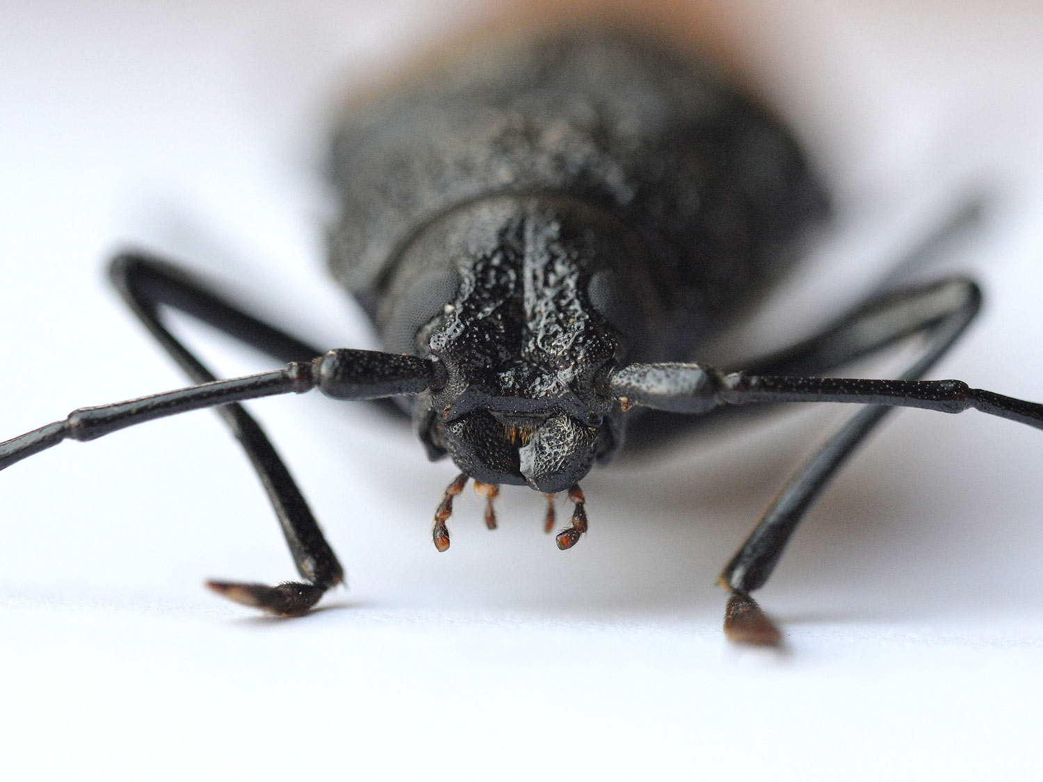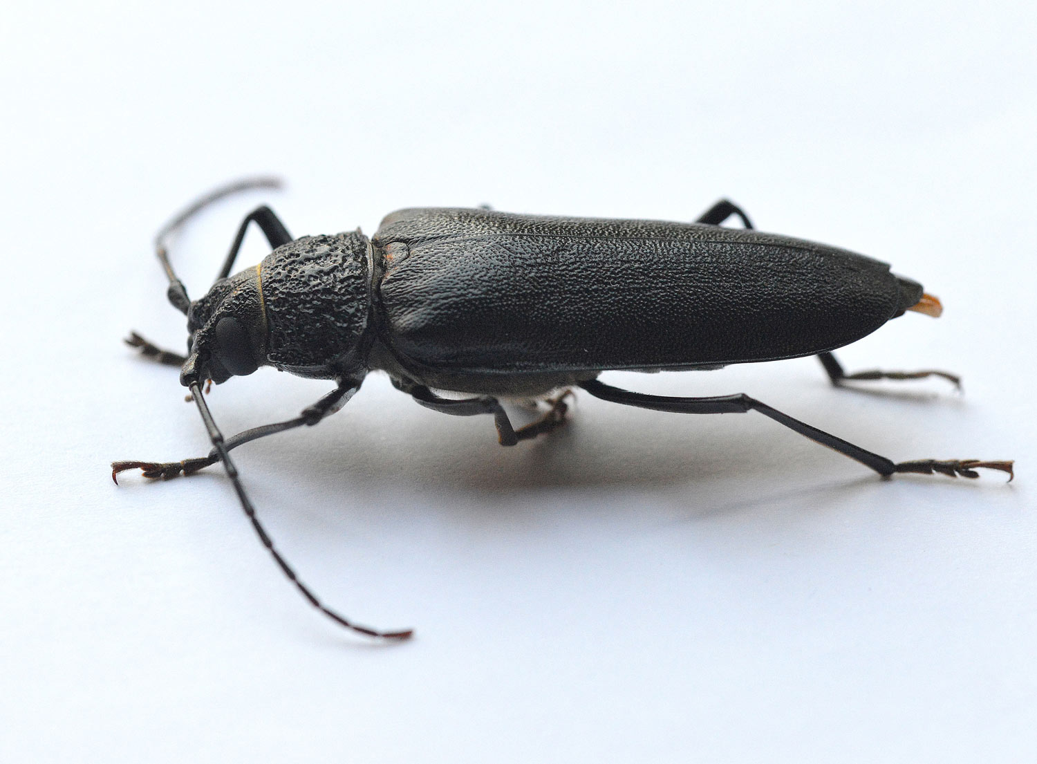 Empezaré por dar las gracias a Francisco Escuderos. Hace unos días me pasó un bello ejemplar de cerambícido (Cerambycidae). Lo encontró agónico al amanecer en una calle cercana a donde reside, en una población del Baix Llobregat (Barcelona). Como se puede ver en las imágenes, se trata de una hembra de Ergates faber, también conocido como escarabajo carpintero. Espero que las fotografías que he tomado hagan justicia de tan bonito longicornio.