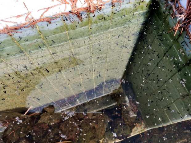 Fig 13. Larvas de Culiseta longiareolata en invierno en una piscina al aire libre en Roda de Ter./ C. Pradera 01-2020