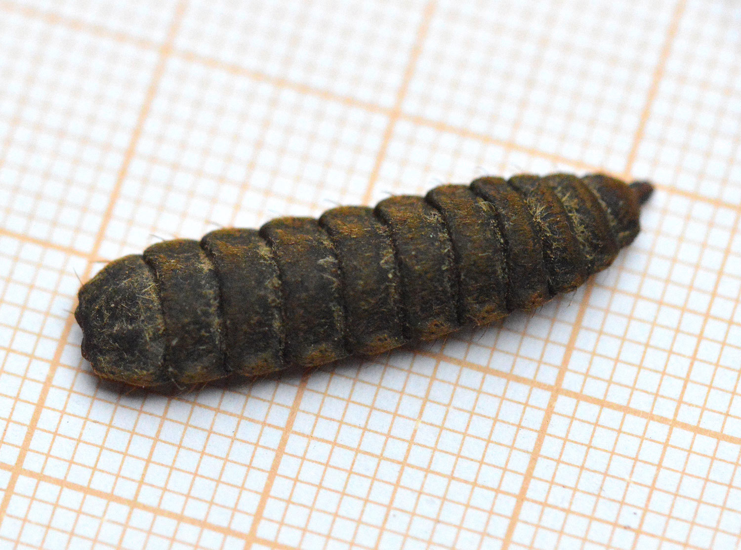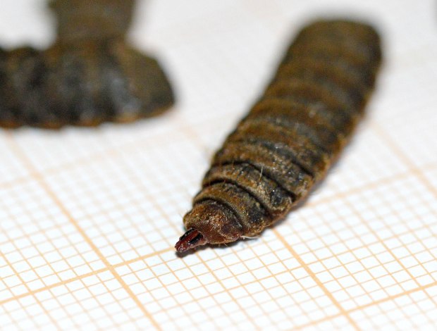 Estaba con un compañero desayunando café con leche y cruasán antes de empezar la jornada laboral. Me entregó un frasco con larvas dentro y me preguntó si sabía de qué se trataba. Yo las miré y le pregunté dónde las había encontrado. La historia era larga, pero se resumía en que salían de un piso de su comunidad que había sido abandonado con gran cantidad de comida en su interior. Los propietarios del piso pasaban un mal momento y las deudas llevaron a ser desalojados. Al parecer los propietarios vivían desde hacía tiempo en ausencia de unas condiciones higiénicas suficientes. Comentó que las larvas le caían a la vecina de abajo. Algo normal en larvas que van a pupar. Al saber algo más del entorno donde habían sido encontradas, sospeché que una larva de tal calibre posiblemente fueran de la mosca soldado negra (Hermetia illucens).