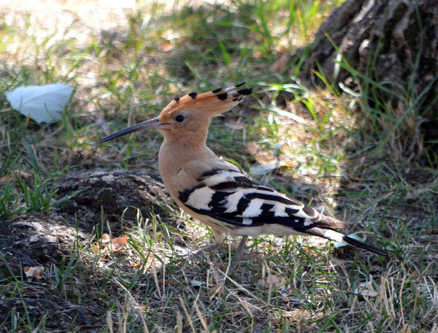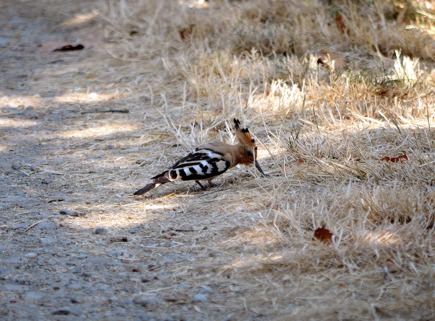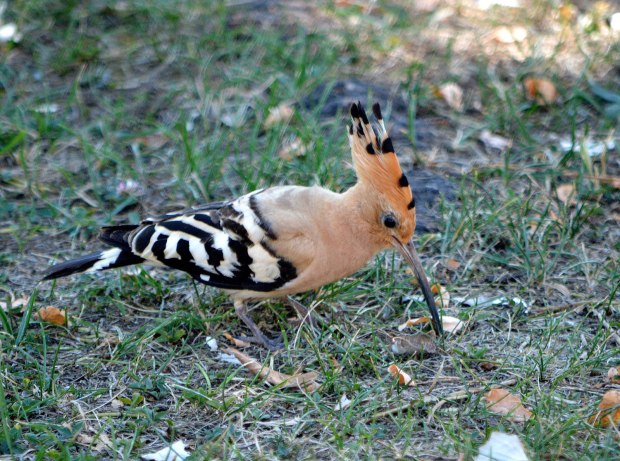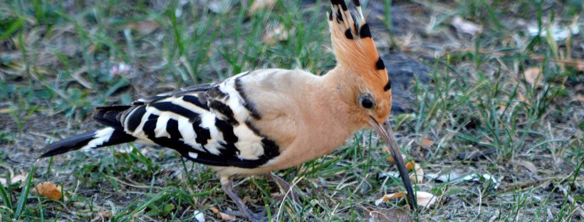 La abubilla (Upupa epops) es un ave singular que tenemos la suerte de poder disfrutar. Se distingue fácil gracias a la gran cresta sobre su cabeza, a las bandas blancas y negras de su espalda y al bonito color salmón del resto de su cuerpo. Pero también por el pico alargado que maneja como un espadachín para picotear el suelo en busca de insectos. Tomé las fotografías en Santo Domingo de la Calzada donde encontré un ejemplar en un parterre de un parque público. Estaba bastante acostumbrado a la presencia de personas y dejó que me acercara hasta unos tres metros. Me hubiera gustado tomar una fotografía con la cresta extendida, pero esta se abre un instante cuando aterriza.